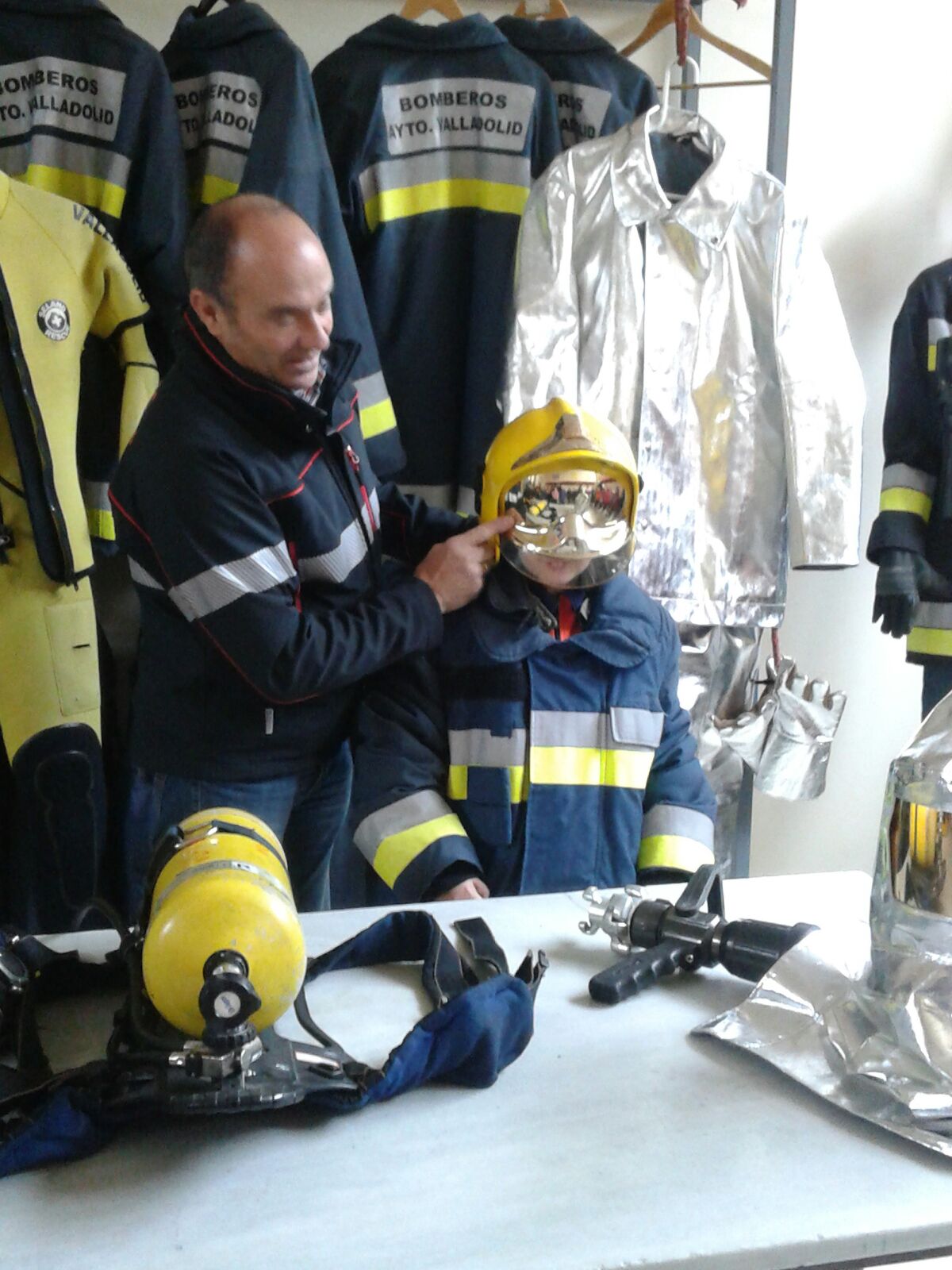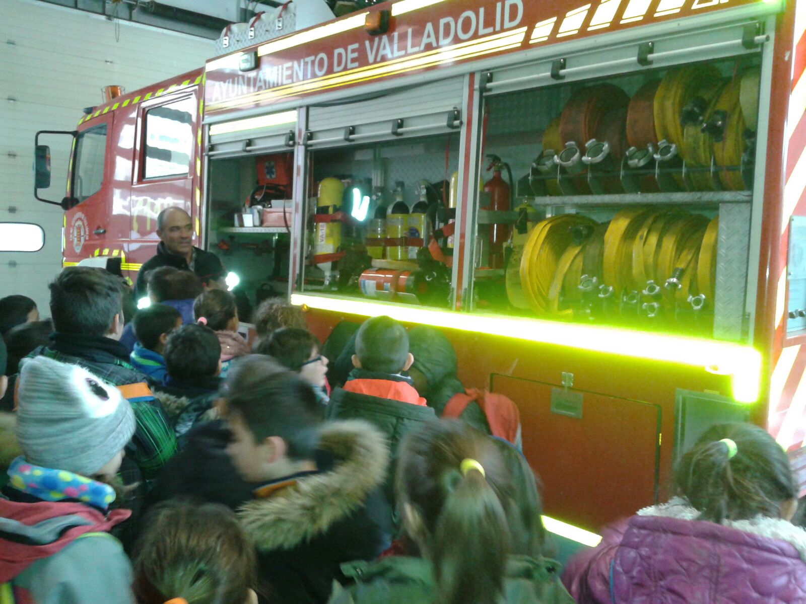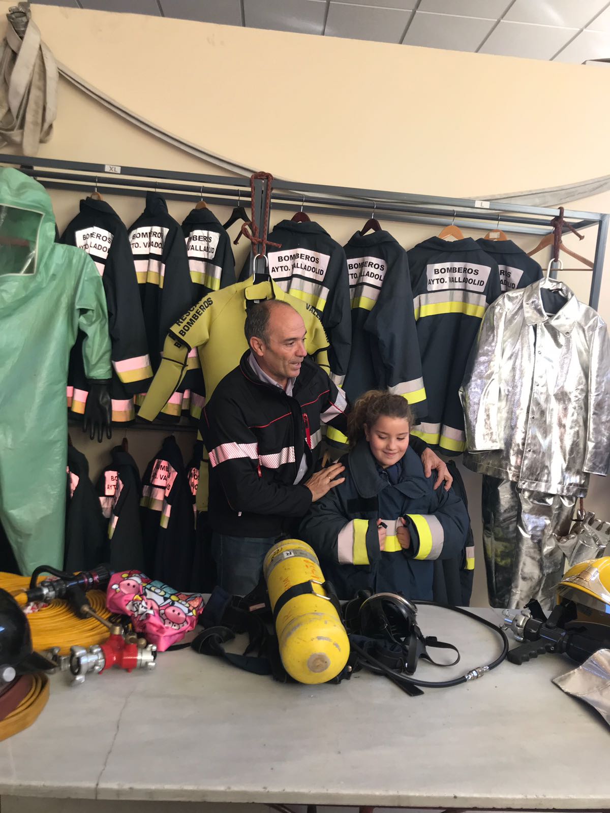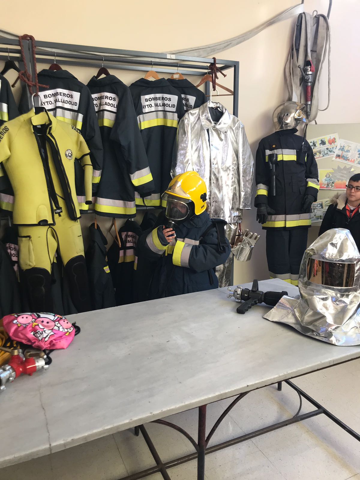 Durante la visita los niños/as recibieron información sobre las diferentes funciones que desarrolla el cuerpo de bomberos de Valladolid en general y cada bombero en particular. Especialmente disfrutaron cuando Raúl, el bombero encargado de la visita, les mostró los diferentes tipos de trajes que utilizan y los vehículos con toda su equipación.