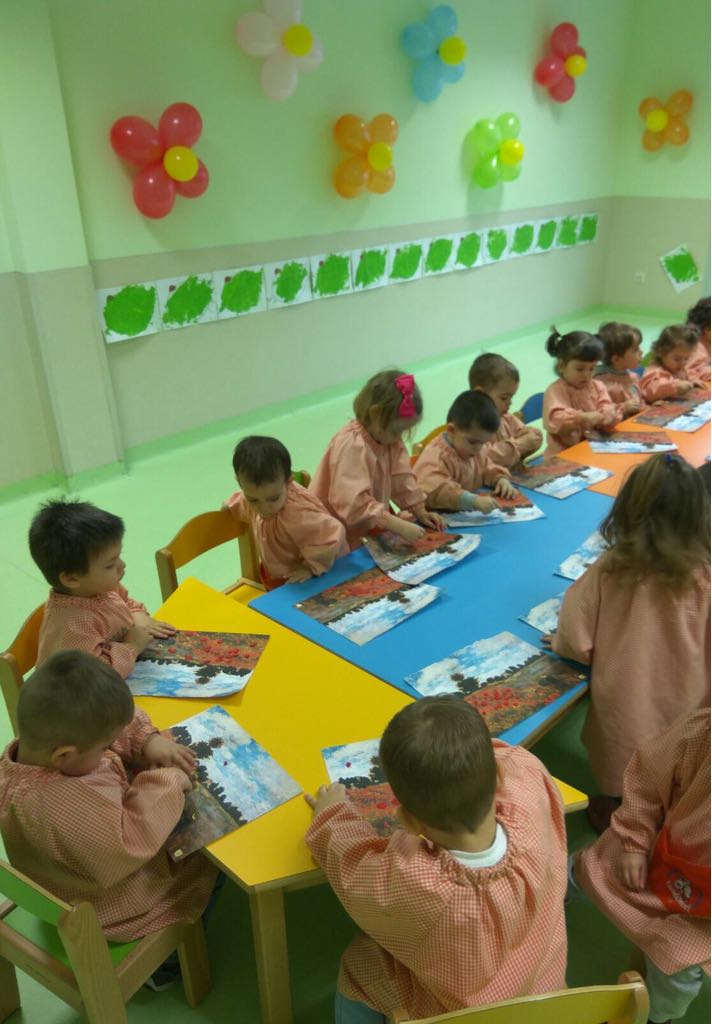 Para celebrar la llegada de la primavera empezamos dando un paseo por los pasillos de la escuela y viendo cómo ha cambiado la decoración y analizando y explicando los distintos paisajes creados donde podemos ver: flores de muchos colores, arboles verdes, mariposas, pájaros…