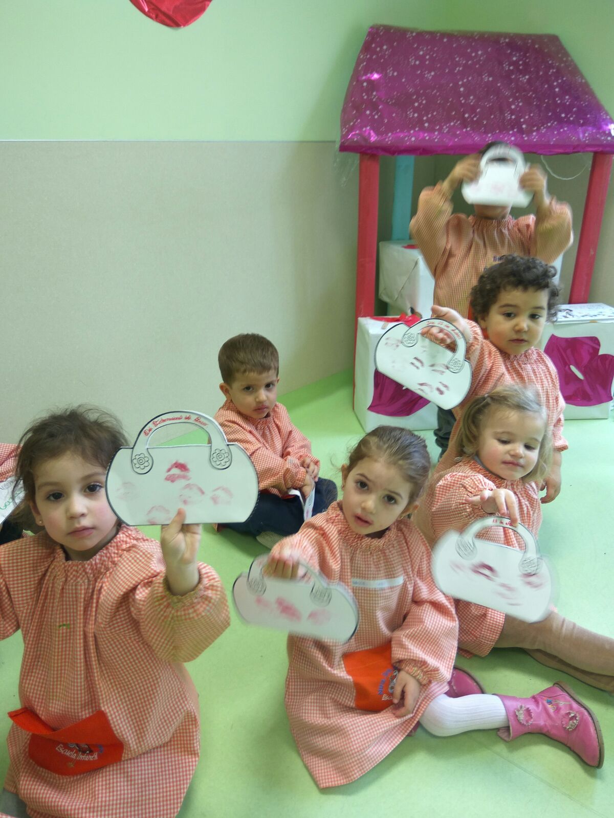 Para celebrar el día internacional del beso, durante la semana la escuela infantil programó distintas actividades: se hicieron miles de besos de cartulina, se decoraron bolsos para llenarlos de besos, se prepararon murales para pintar, se pidieron pinta labios….etc.