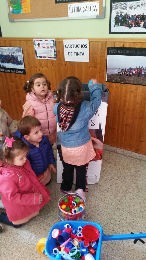 Los alumnos en la escuela infantil han llevado por segunda vez los tapones recogidos para reciclar en el contenedor que hay en el edificio de secundaria.
