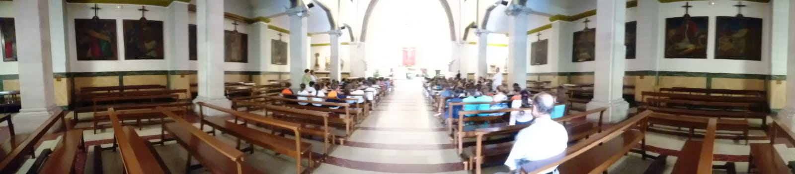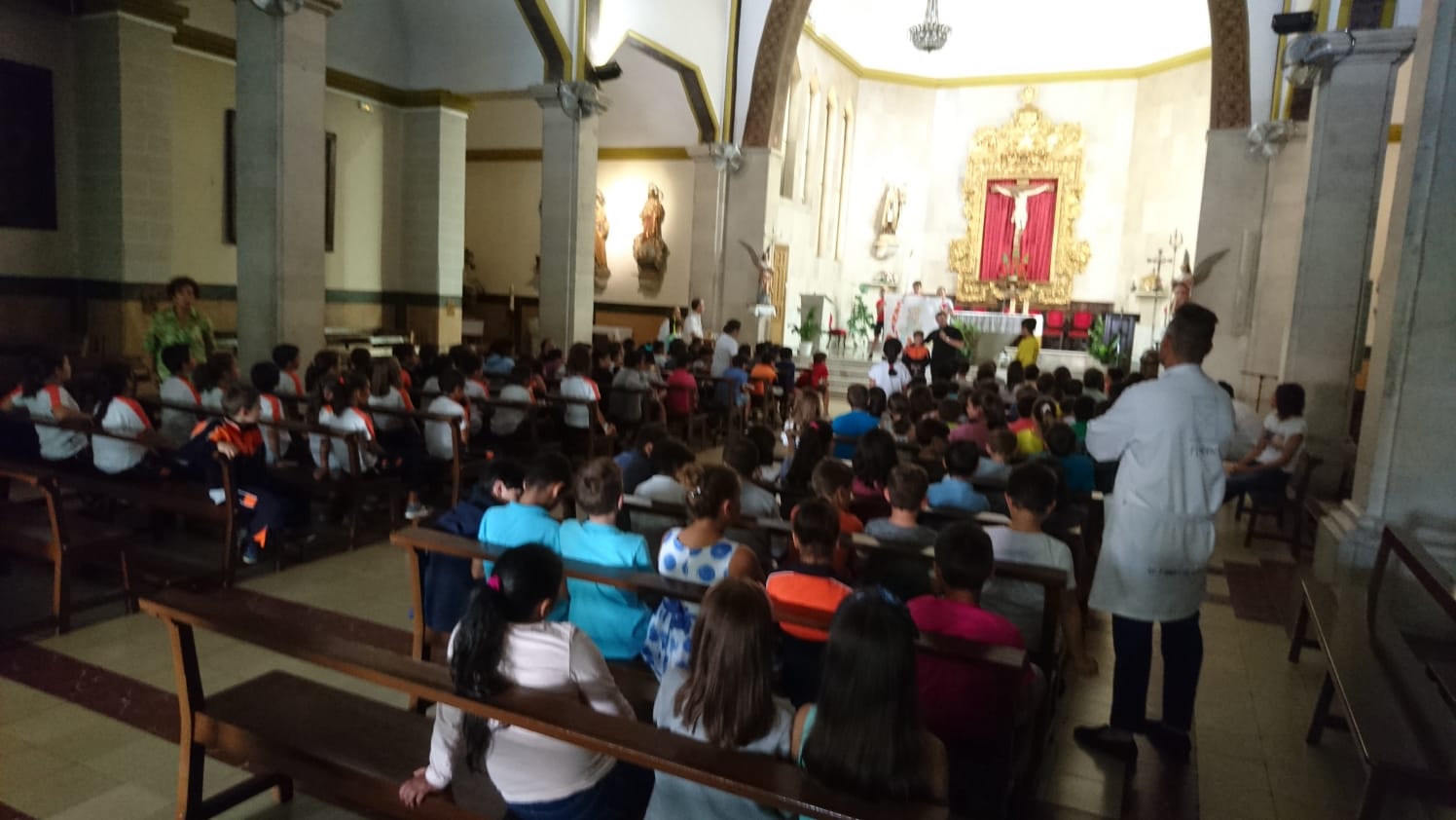 Los alumnos de 4º a 6º realizaron el acto en la Iglesia del Carmen, donde escucharon atentamente la “Parábola de los dos hijos”.