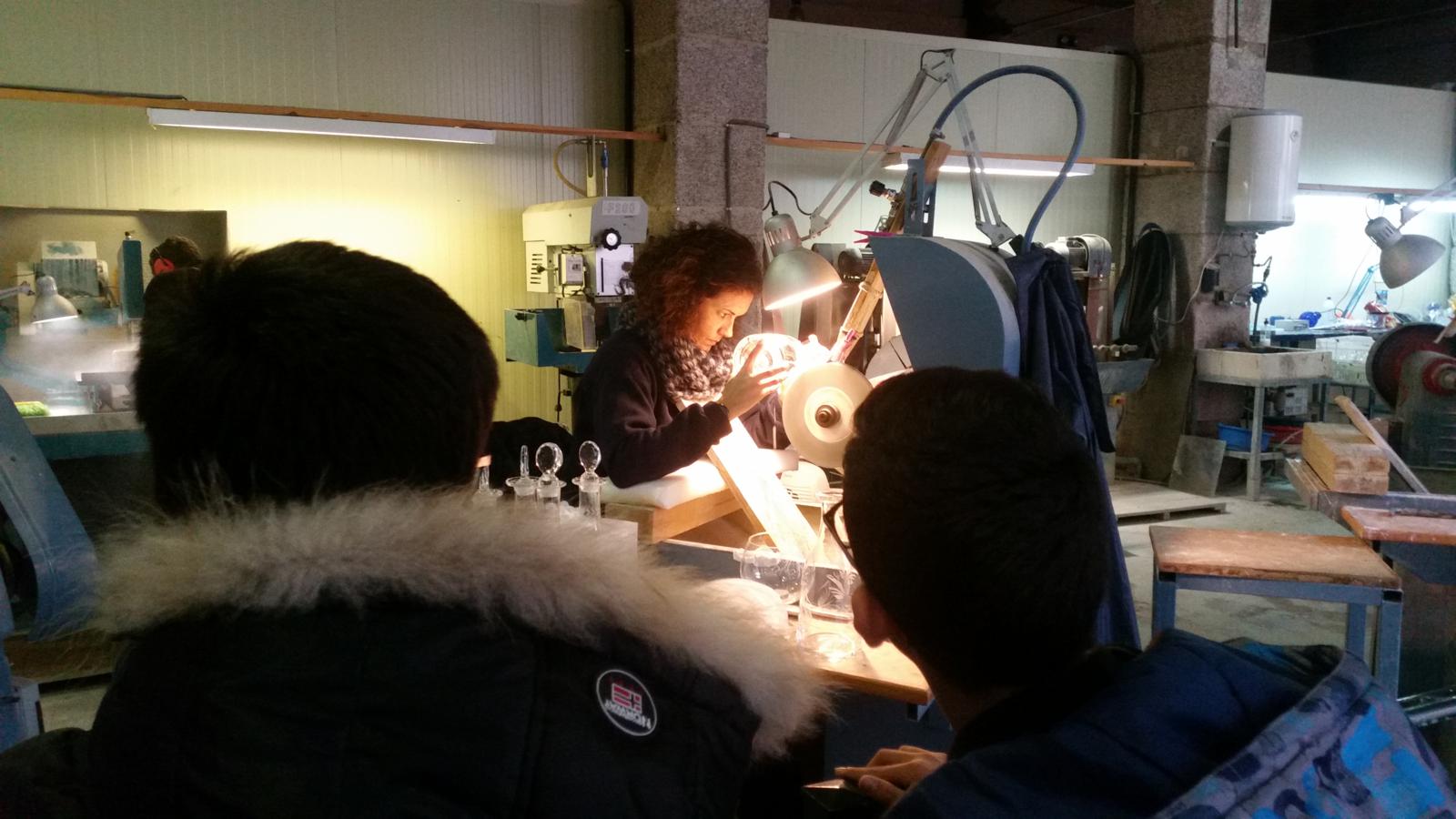 Comenzamos la visita en la Real Fábrica de Vidrio que fue una manufactura real del siglo XVIII, donde se fabrican todo tipo de objetos: recipientes de mesa y adorno, vidrios planos, objetos de farmacia y óptica, ventanas y espejos y las fantásticas lamparas tipo araña para abastecer al palacio de la Granja. Para la fabricación de este fantástico vidrio utilizan sílice (arena), cal, sodio y potasa. Para colorearlo utilizan distintos óxidos (de hierro para el verde, de cobalto para el azul…) y sales de oro para el rojo rubí. Muchos de nosotros habríamos pasado horas contemplando como transforman esa masa viscosa amarilla en magnificas obras de arte de vidrio.