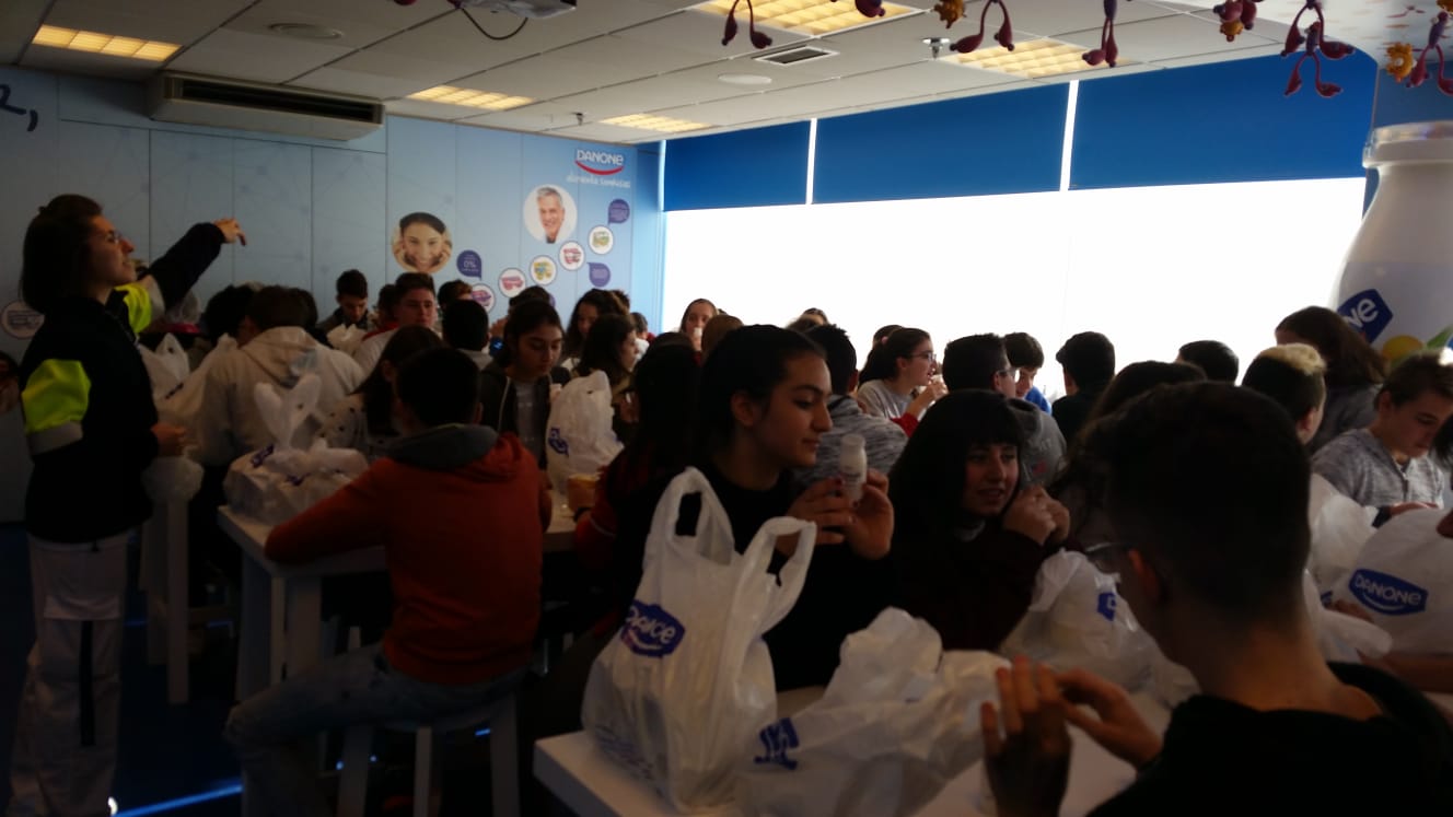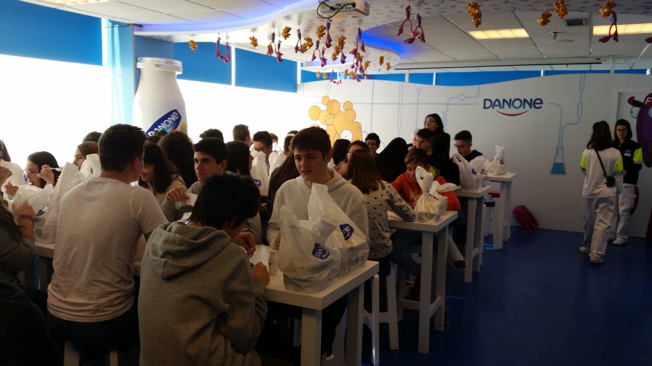 Después desde allí nos fuimos a visitar la fábrica de Danone que se encuentra en Tres Cantos. En la fábrica al comienzo nos explicaron en una sala como al principio el yogur era una medida medicinal y que se compraba en la farmacia. Nos dios cuenta de la importancia de las bacterias ya que gracias a ellas se transforma la leche en yogur. Visitamos la fábrica y al final nos dieron para probar varios productos de Danone y otros para llevar a casa.