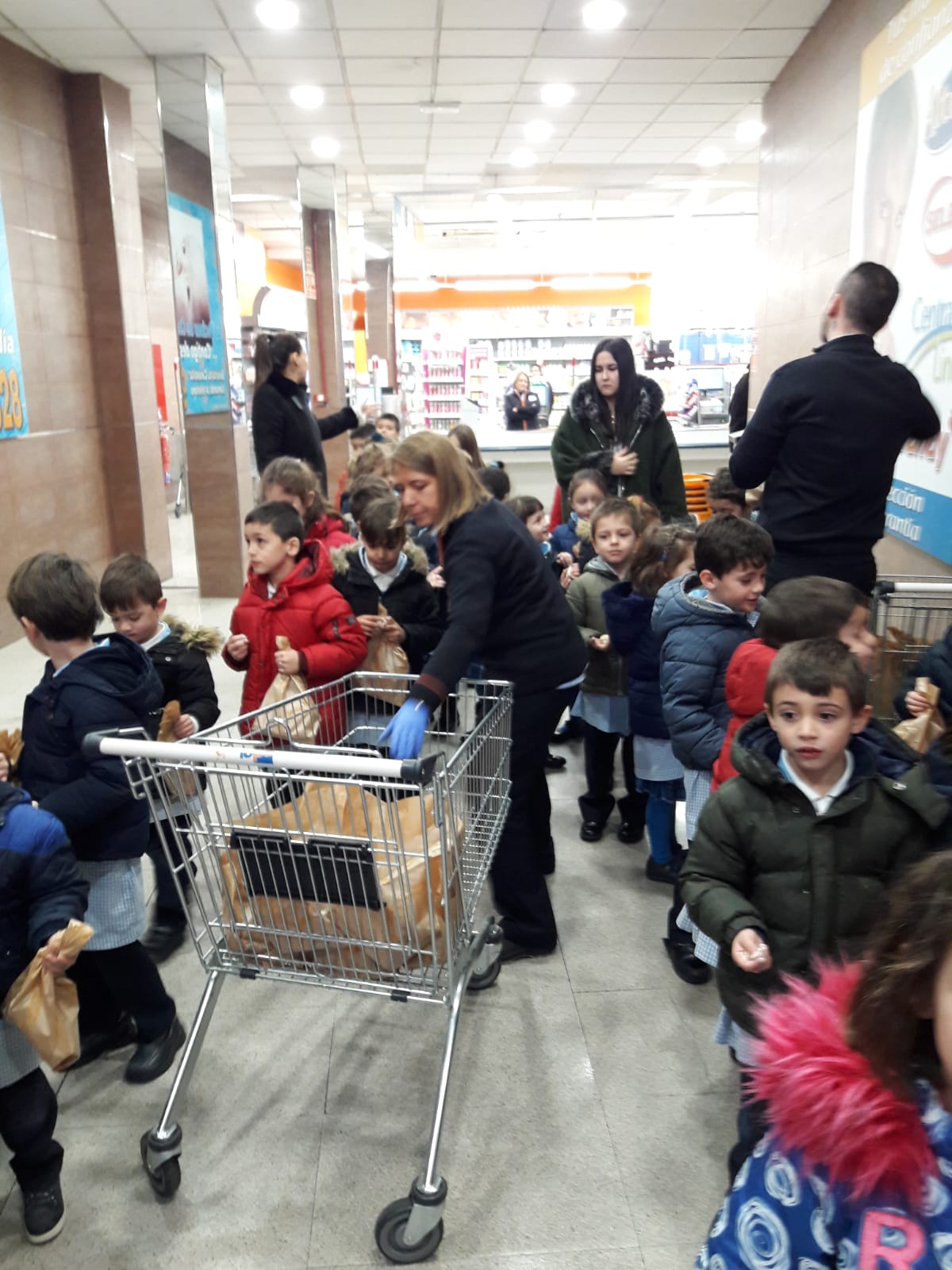 El pasado 29 de enero los alumnos de 3ºE.I visitamos el supermercado del barrio “Lupa”. Allí nos recibió Susana, con ella pudimos observar y aprender los productos que hay en cada sección: frutería, pescadería, carnicería, charcutería, congelados,… pero lo que más nos gustó fue la panadería porque fuimos panaderos por un rato, ¡Qué divertido!