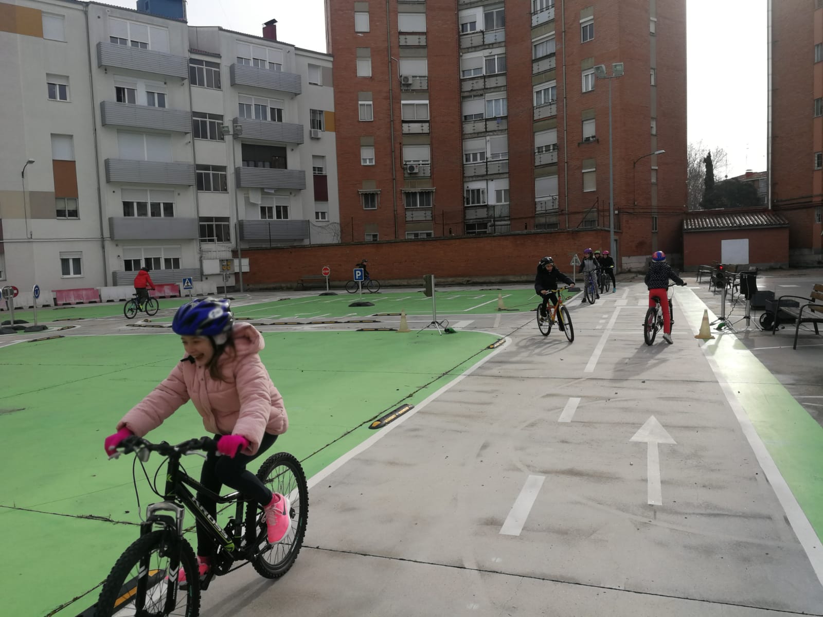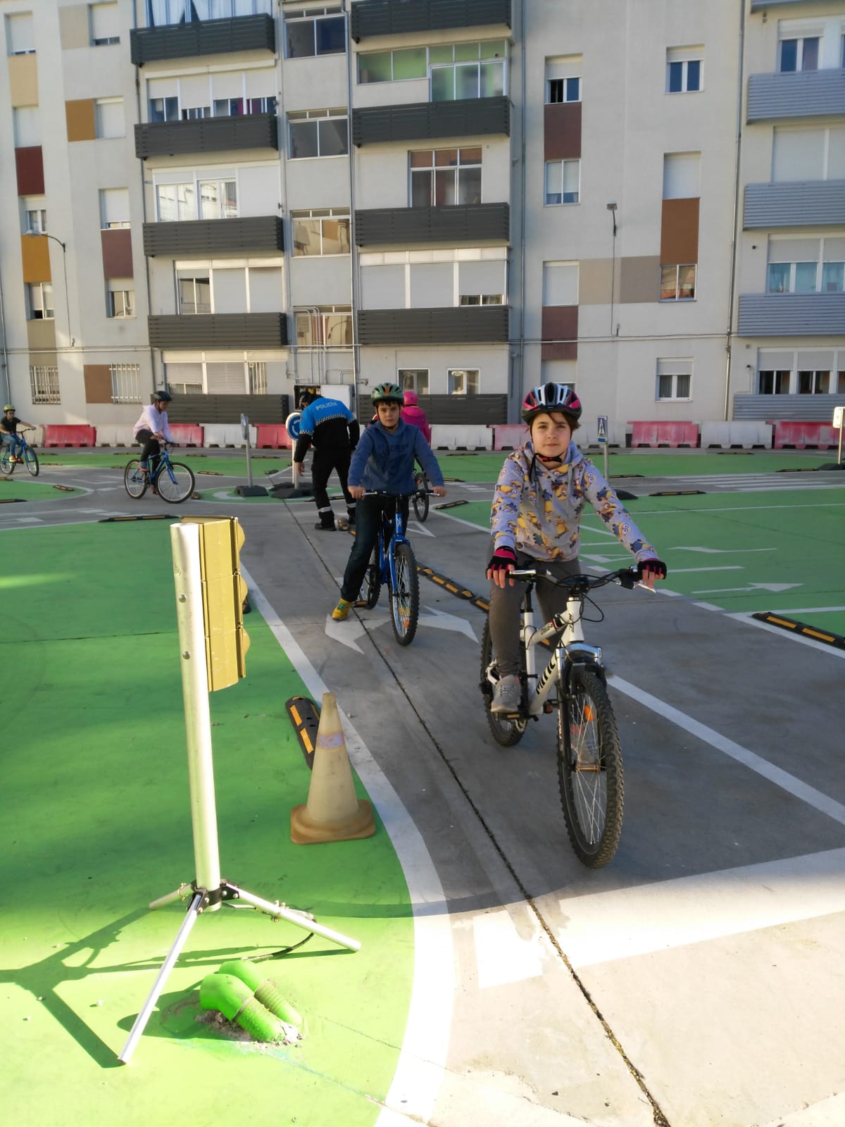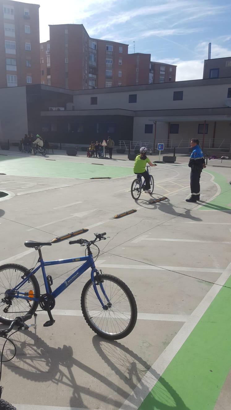 La primera actividad consistía en un pequeño circuito con la bici que estaba basado en la Plaza Circular, donde empleábamos las normas de circulación que nos explicaron en la charla. Me divertí mucho porque se estropearon los semáforos y se tuvo que ocupar del tráfico un compañero…