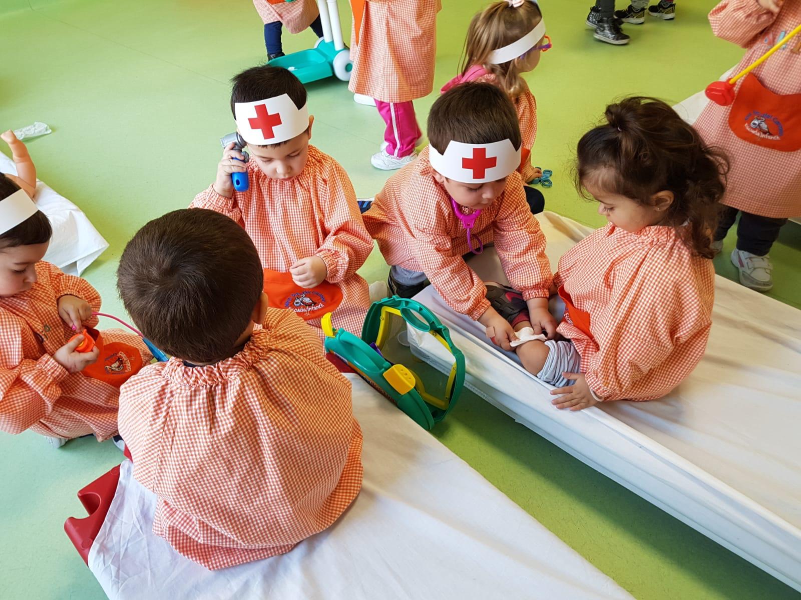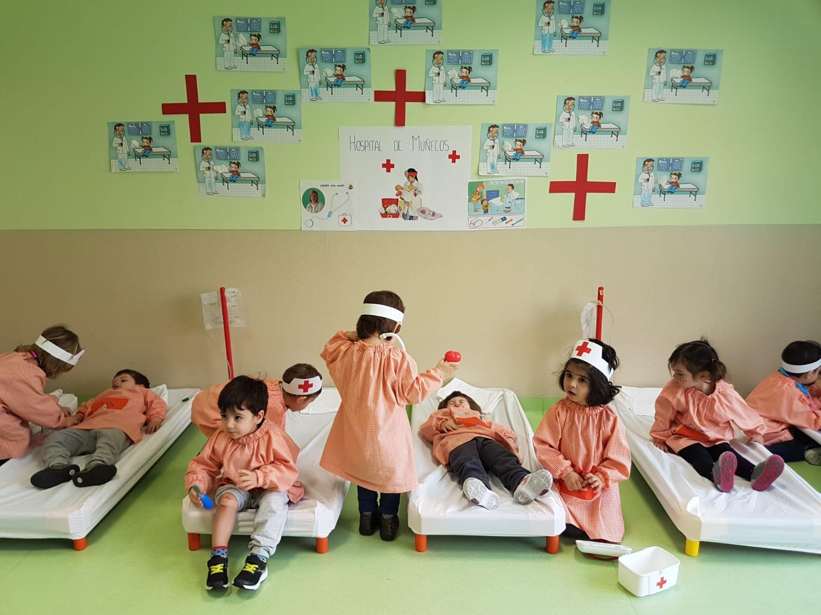Ayer los niños de la clase de 2-3 años se convirtieron en médicos por un día. Jugaron a ser pacientes y doctores, a la vez que aprendieron y entendieron que los hospitales son para ayudar a los demás y no hay porqué que tenerlos miedo.