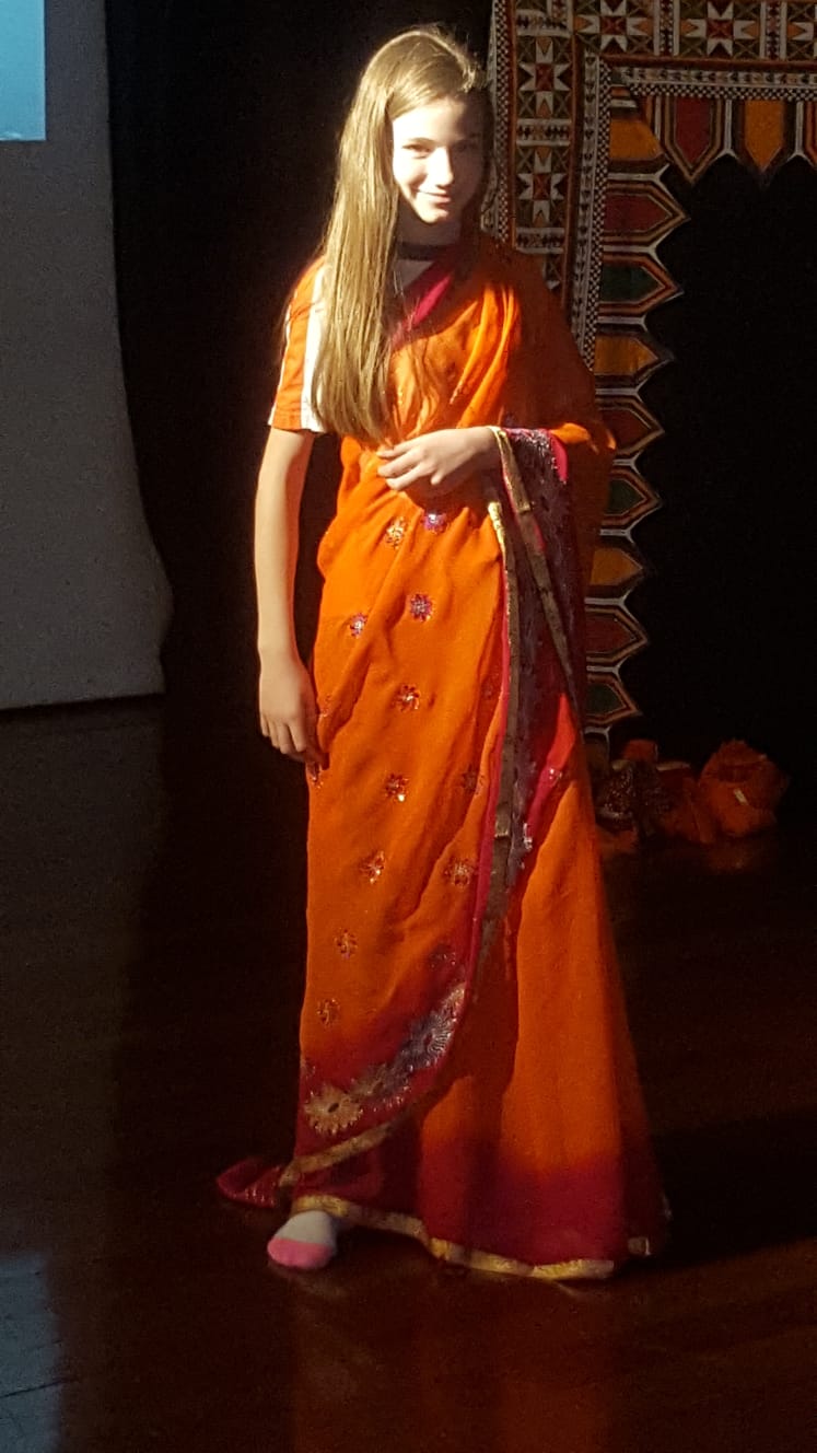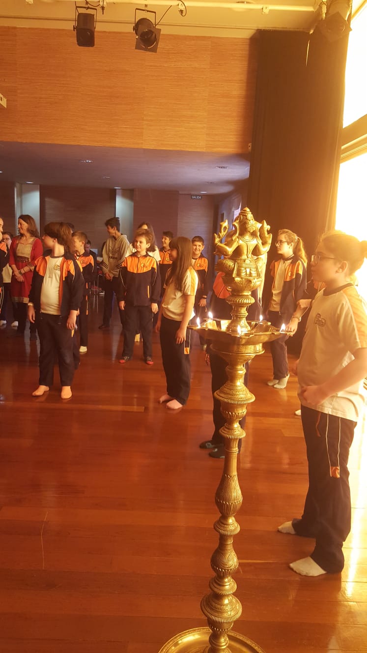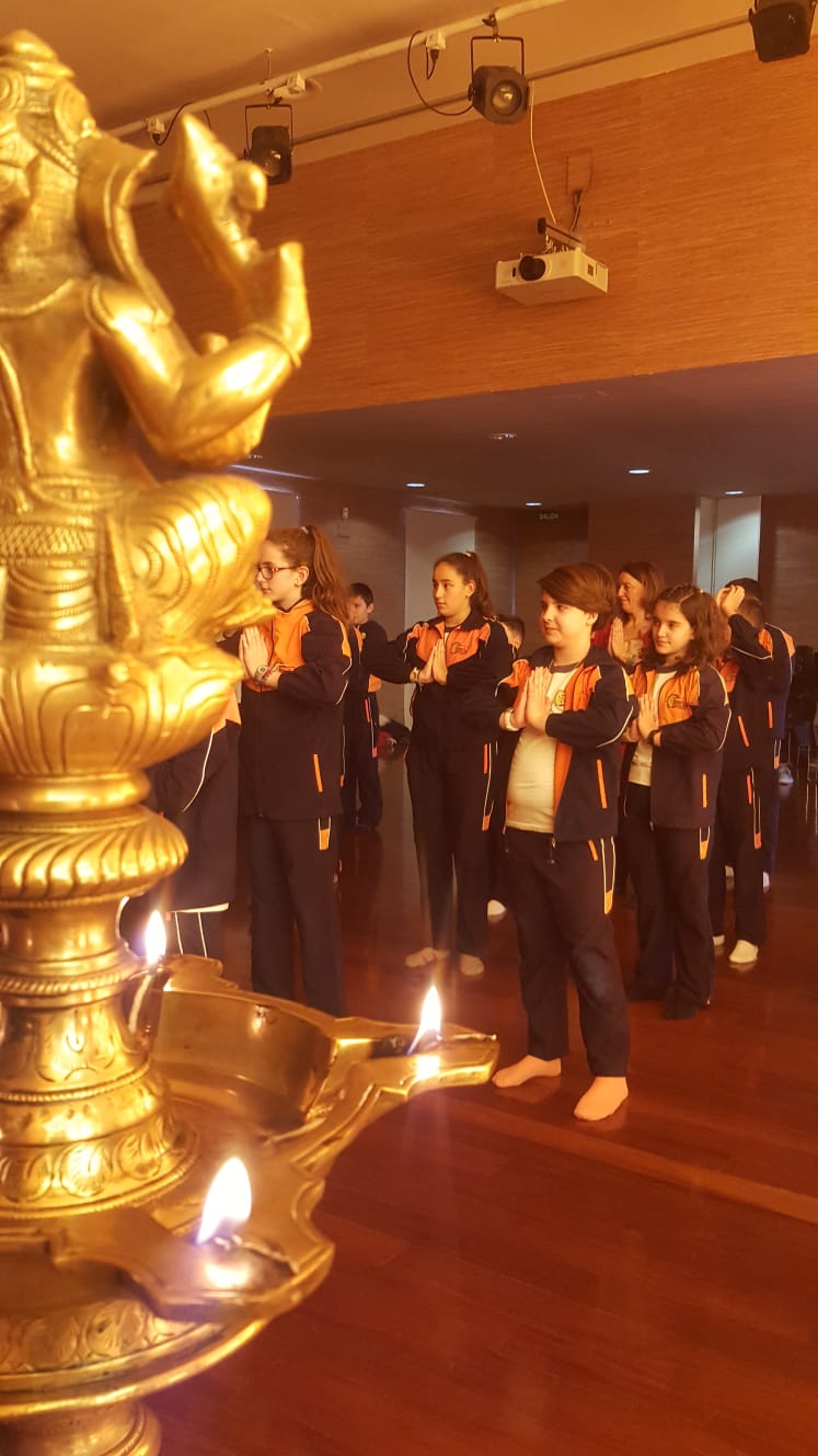 Después nos fuimos a un salón en el que nos contaron cosas como que los animales que hay allí son el dhole, el bisonte indio, el gharial….Y que el animal sagrado es la vaca. A continuación nos mostró la monitora, Mónica de la Fuente, algunas costumbres, saludo, vestidos típicos… Y por último hicimos algunos bailes populares tradicionales.