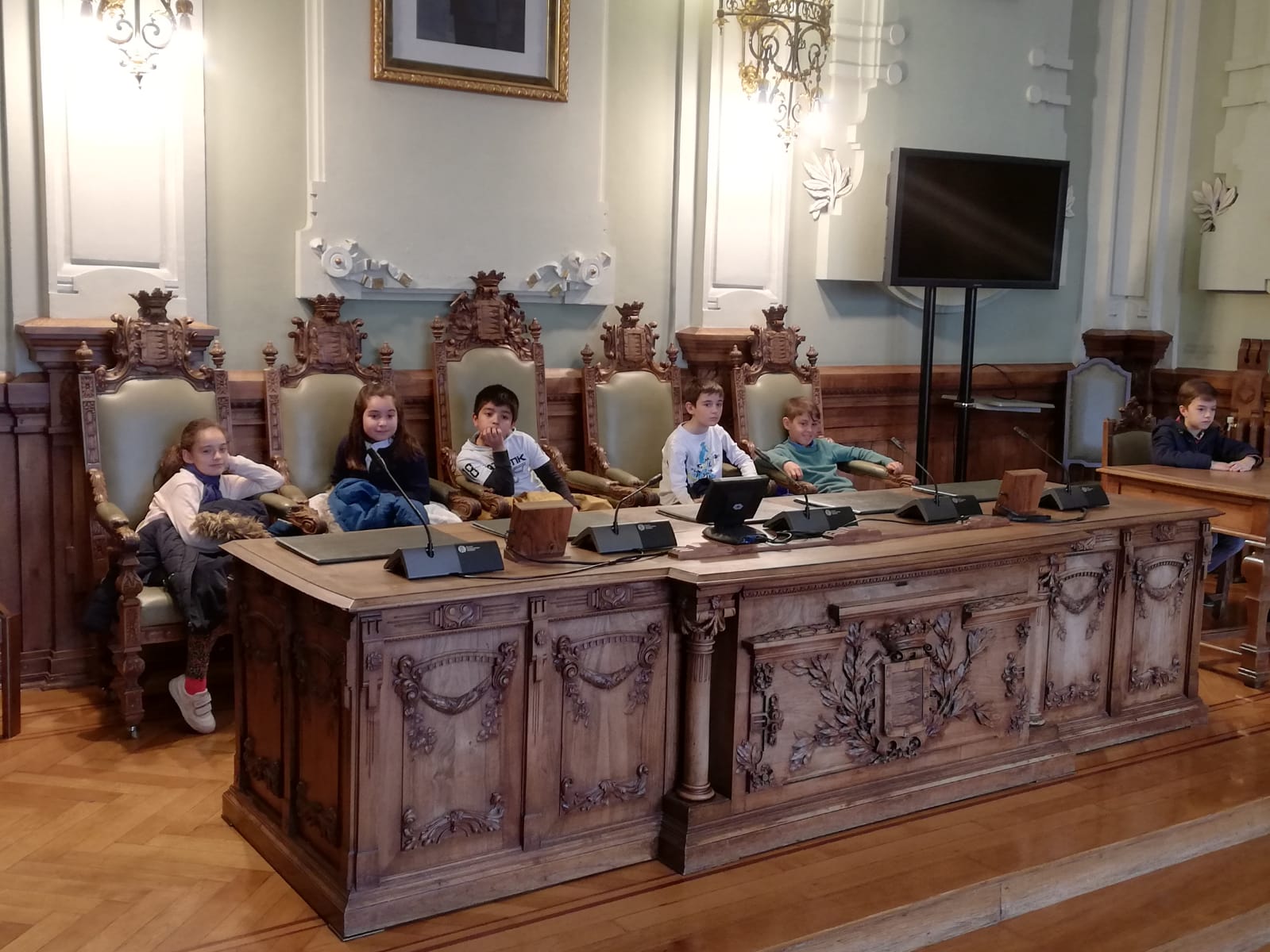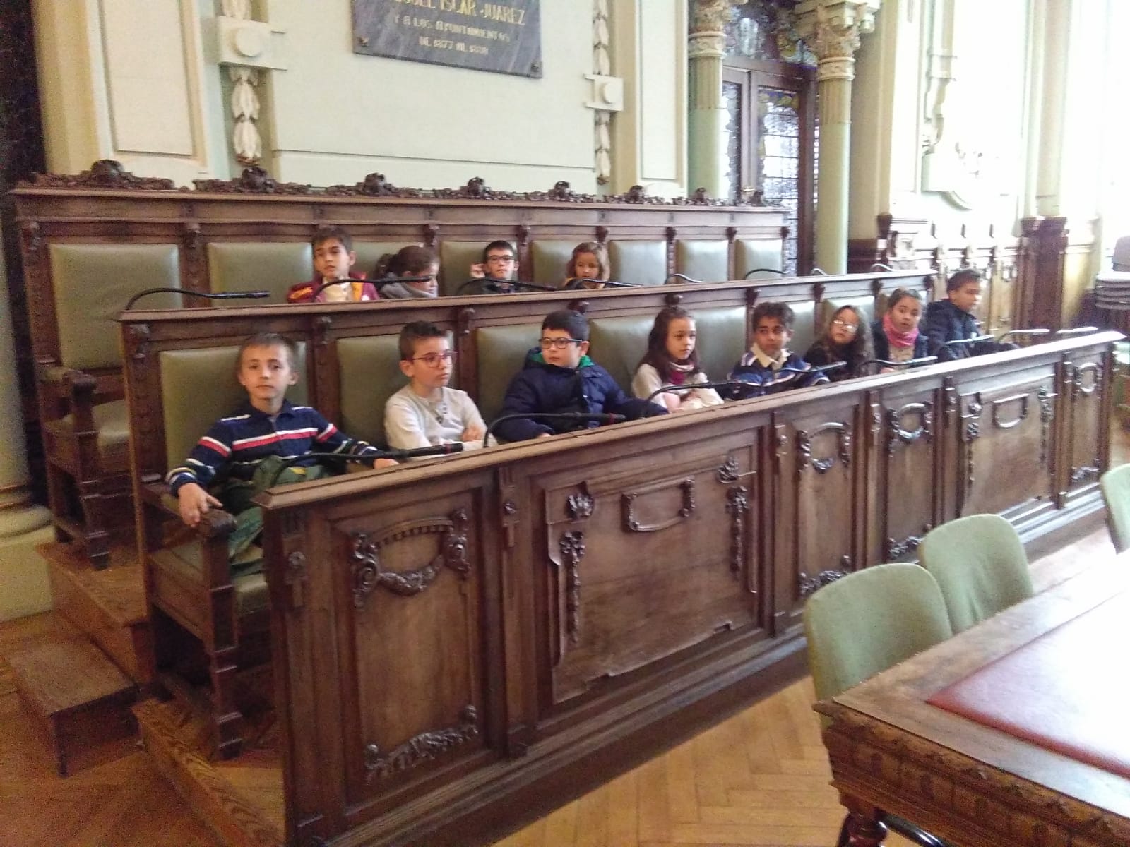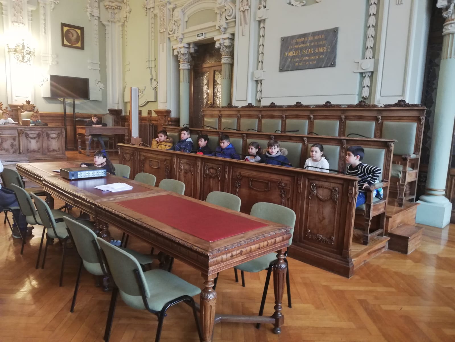 Allí nos han enseñado quiénes forman un ayuntamiento y las salas principales de la Casa Consistorial: la sala de plenos y la sala de conferencias.
