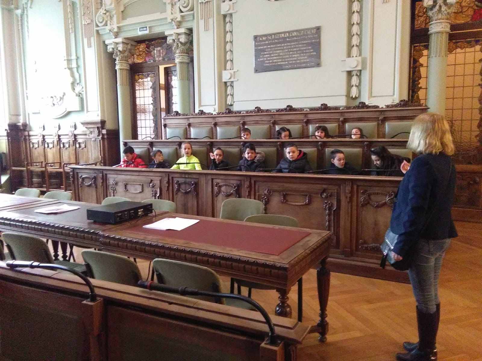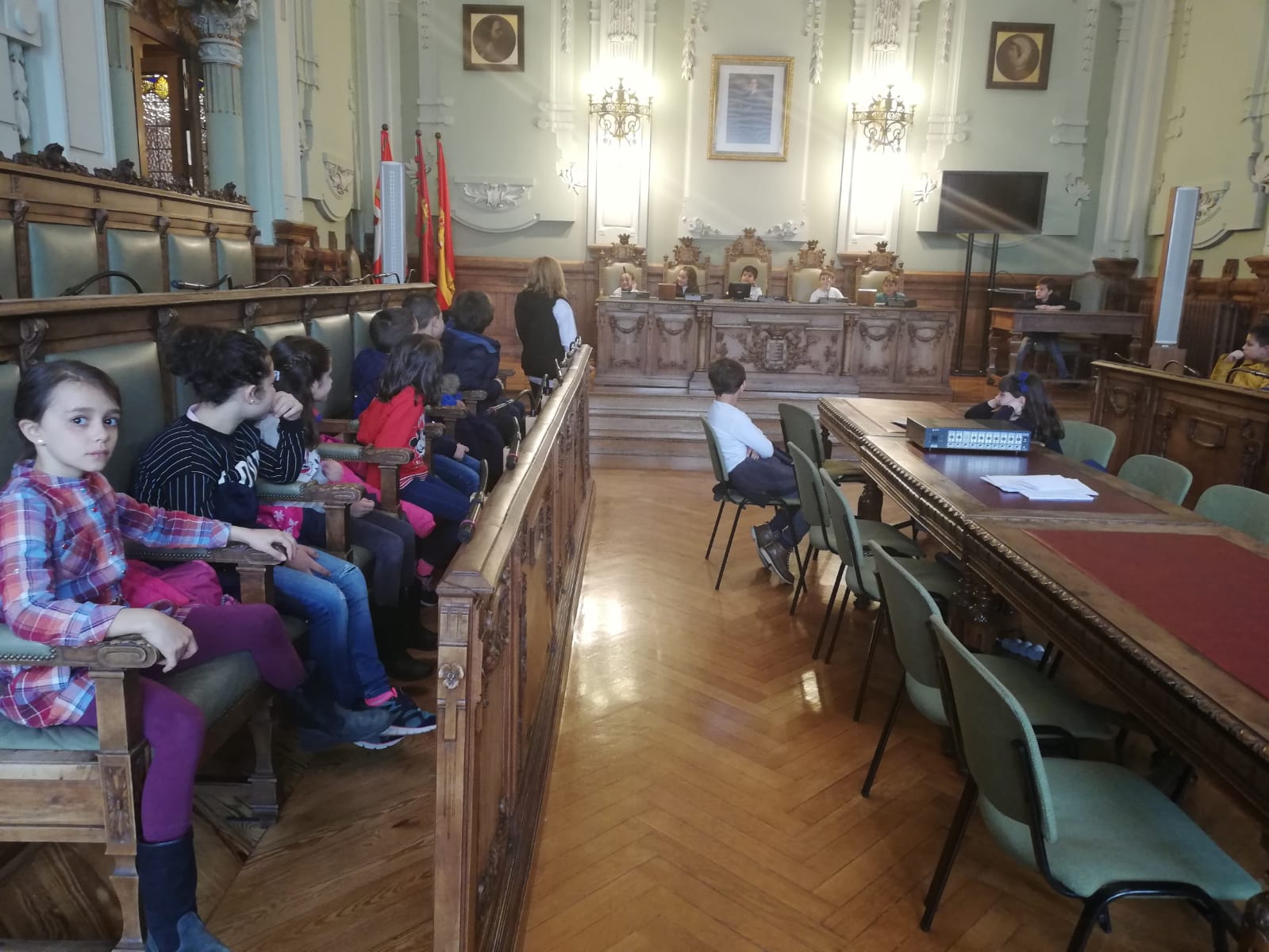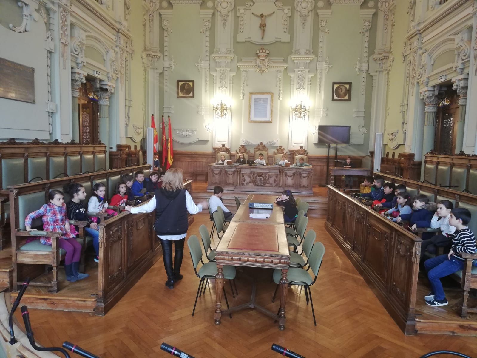 Allí nos han enseñado quiénes forman un ayuntamiento y las salas principales de la Casa Consistorial: la sala de plenos y la sala de conferencias.