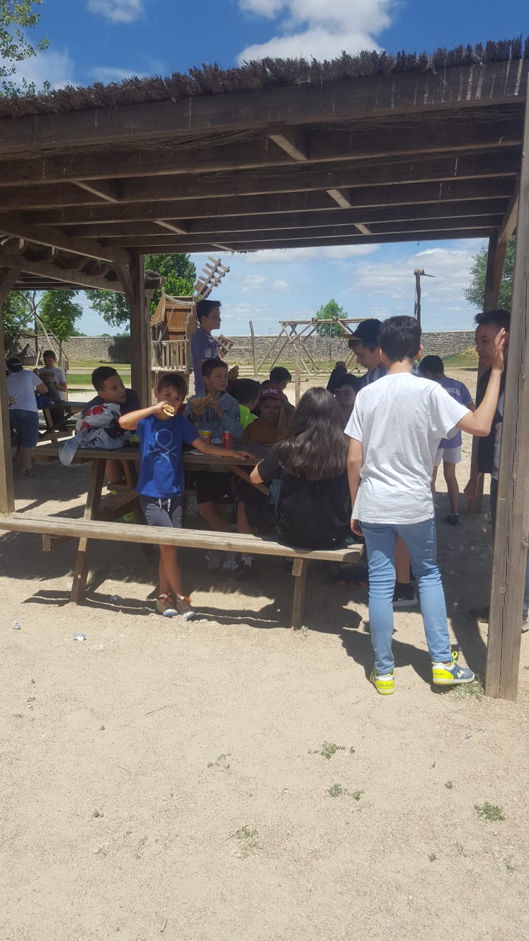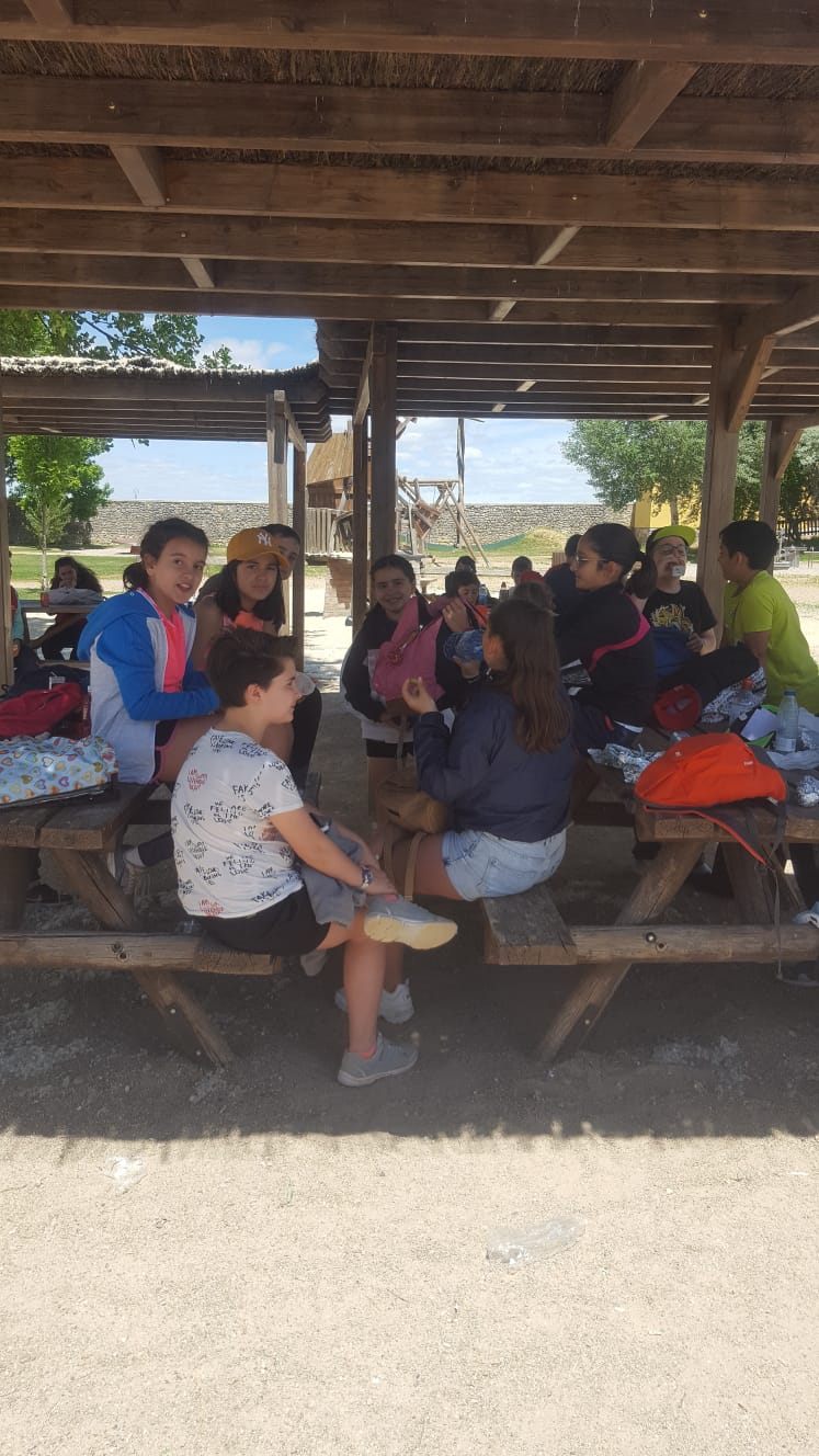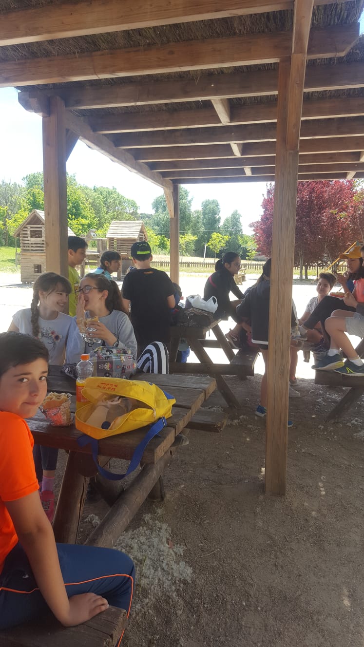 Cuando fue la hora de comer lo hicimos en la zona de recreo. Seguidamente fuimos a la zona de juegos: tirolina, toboganes, juegos colectivos…y nos lo pasamos todos muy bien; riéndonos, jugando, chillando…y derrochando adrenalina a tope.