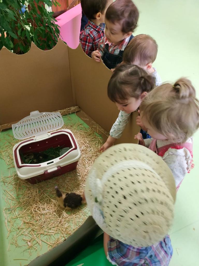 Los niños de la Escuela Infantil recibimos una gran sorpresa… cuando llegamos a la escuela nuestros aulas se habían convertido por arte de magia en una “Granja” y nuestras profes en granjeras, nos visitaron peces, patos, perros, conejos, pájaros, gallinas… para algunos de nosotros era primera vez que veíamos algunos de estos animales.