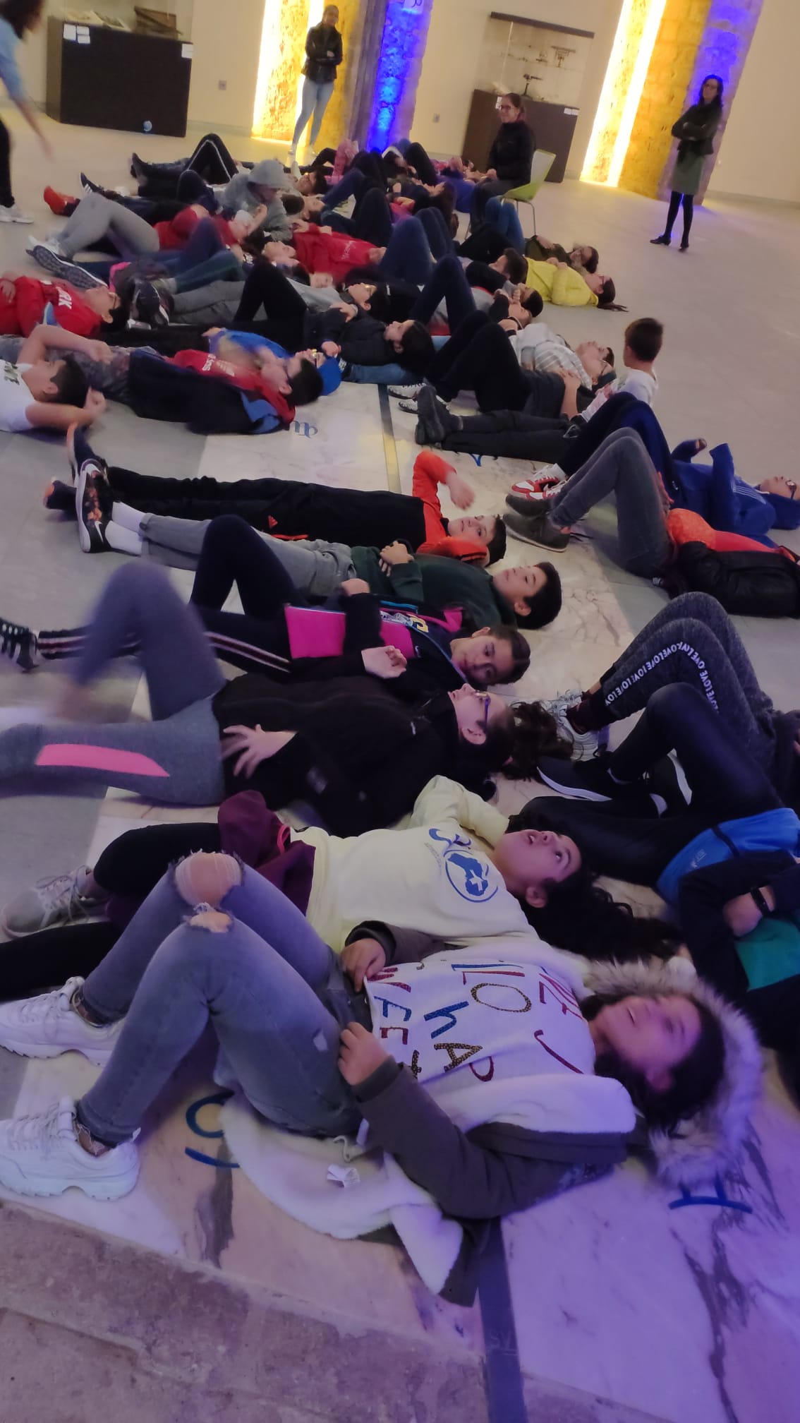Posteriormente cuando ya habíamos entrado, nos llevaron a una esquina en la cual había un péndulo, allí estuvimos haciendo varias actividades, más tarde nos fuimos al medio de la sala y nos tumbamos ya que en el techo había un cielo con constelaciones. Hicimos un reloj de sol con un folio y antes de irnos subimos a una zona de la sala que se veía toda ella. Pasaron unos minutos y ya nos fuimos al autobús.