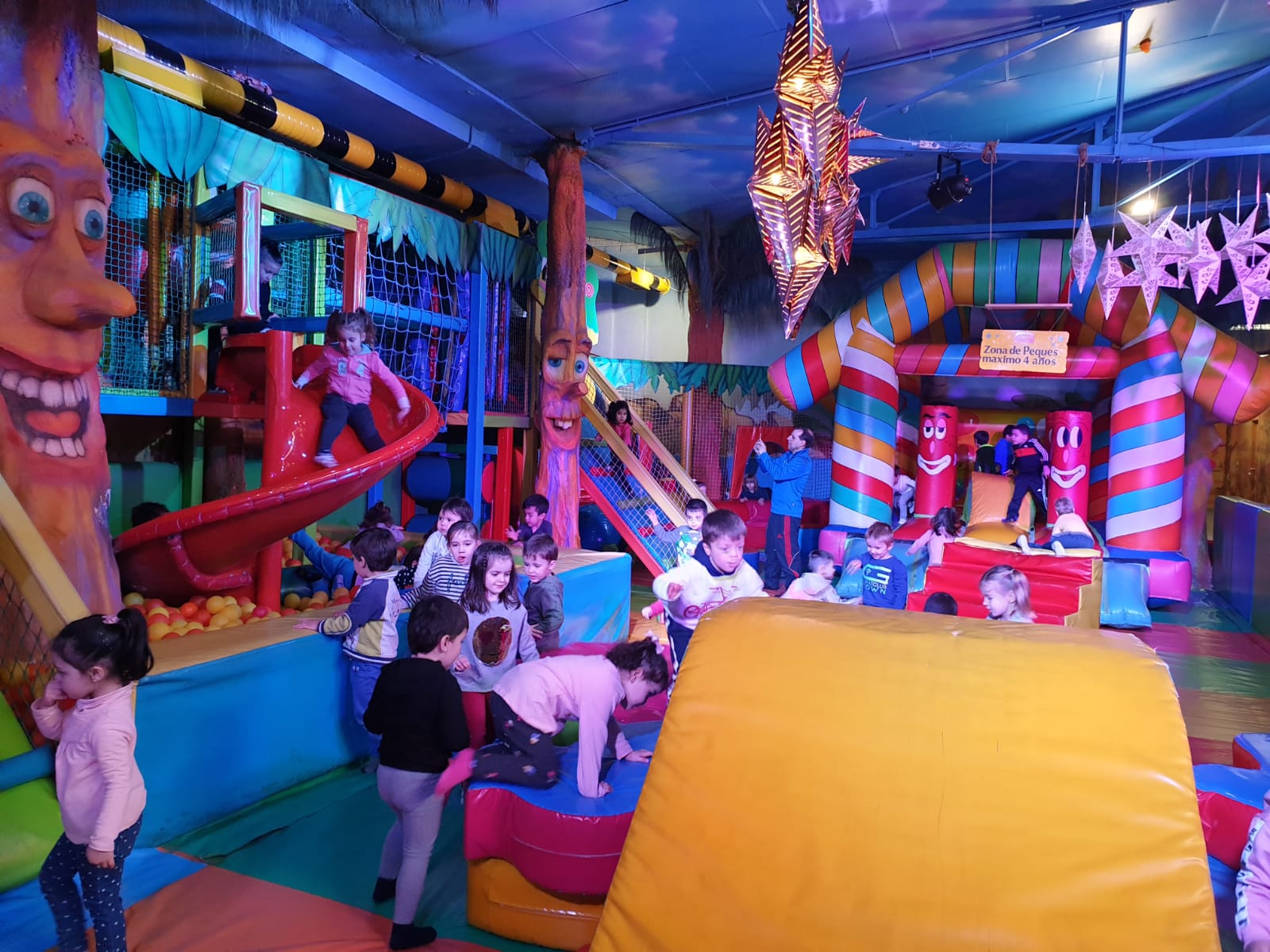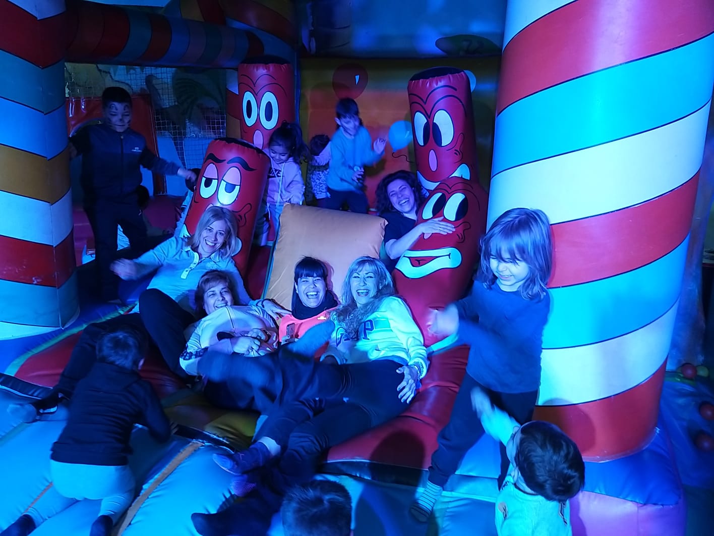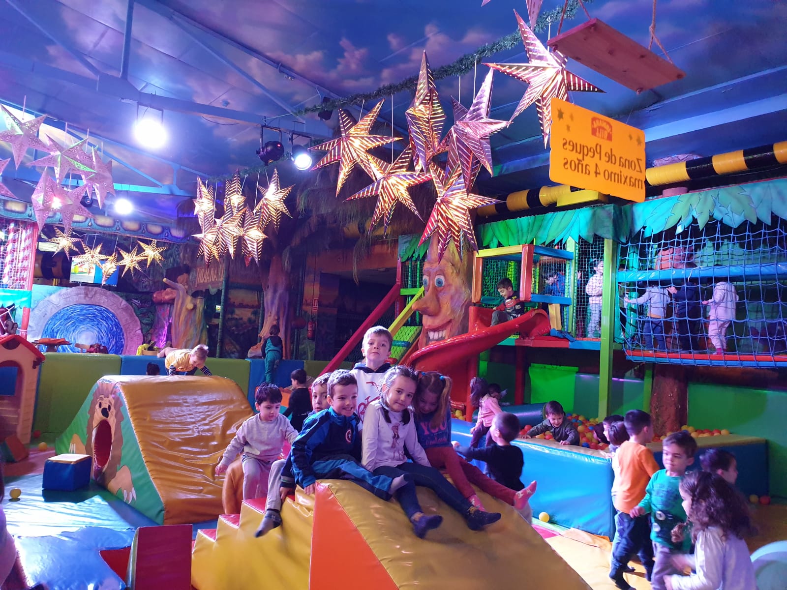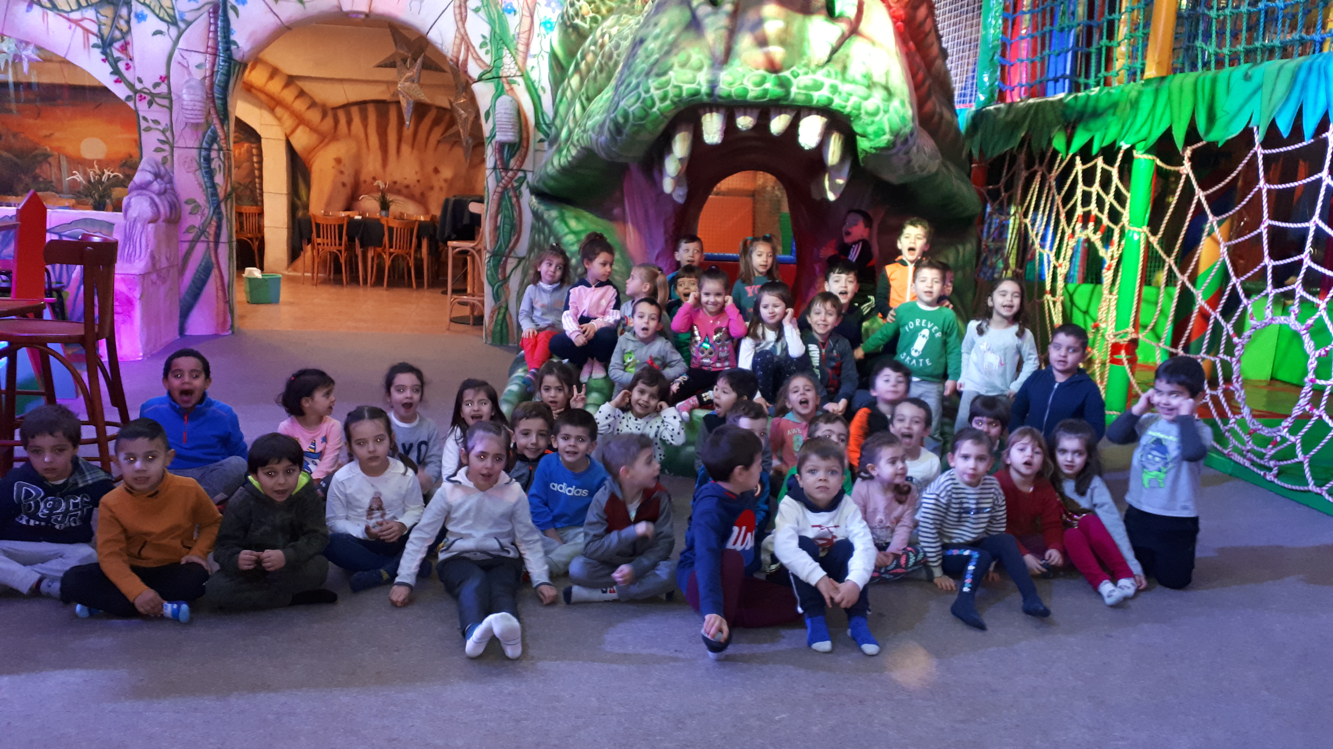 Lo pasaron muy bien compartiendo juegos con nuestros compañeros y profesores en las colchonetas, la casa del terror, la piscina de bolas, toboganes, jugando al fútbol.. Cantamos y bailamos en el escenario.