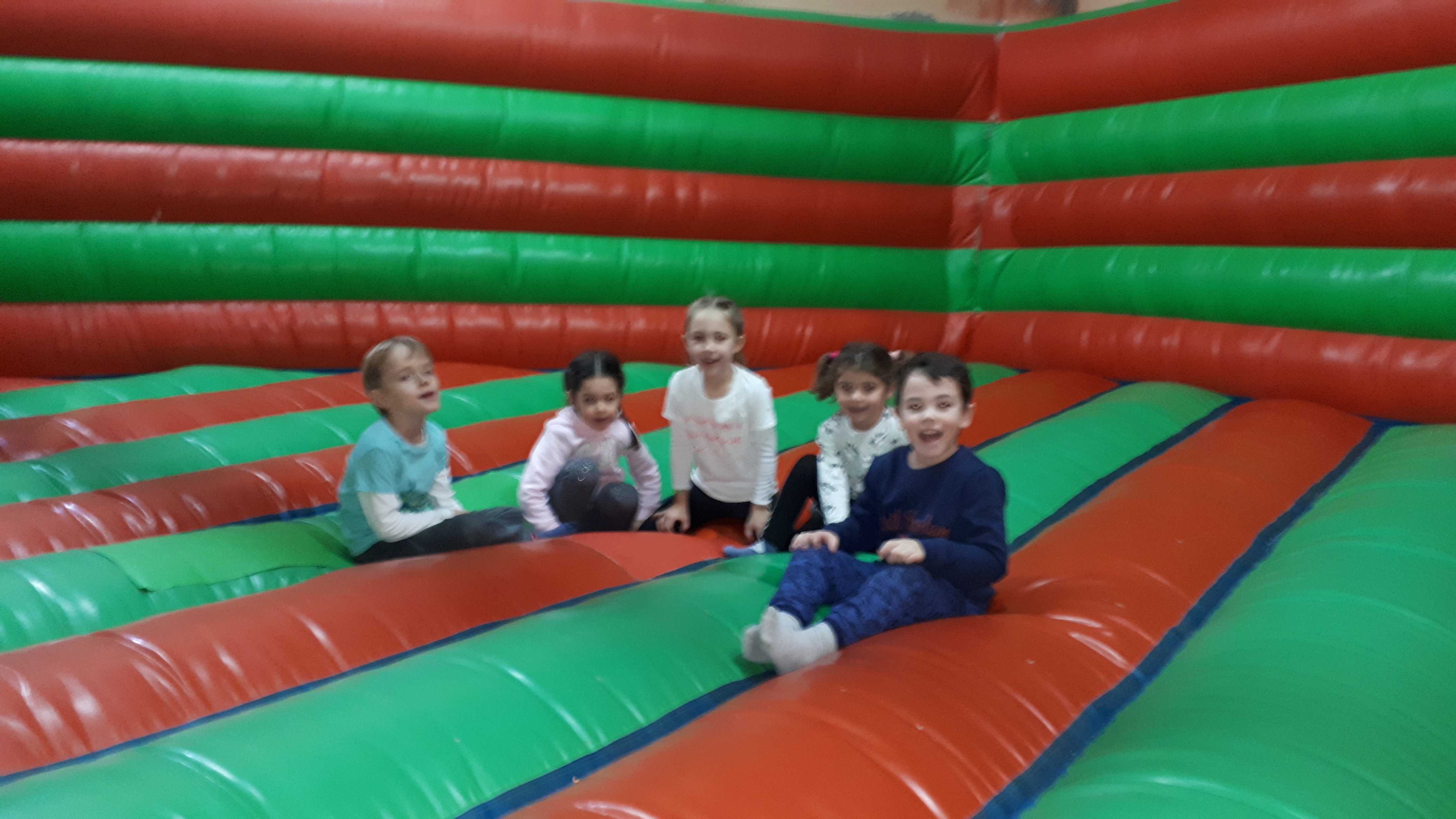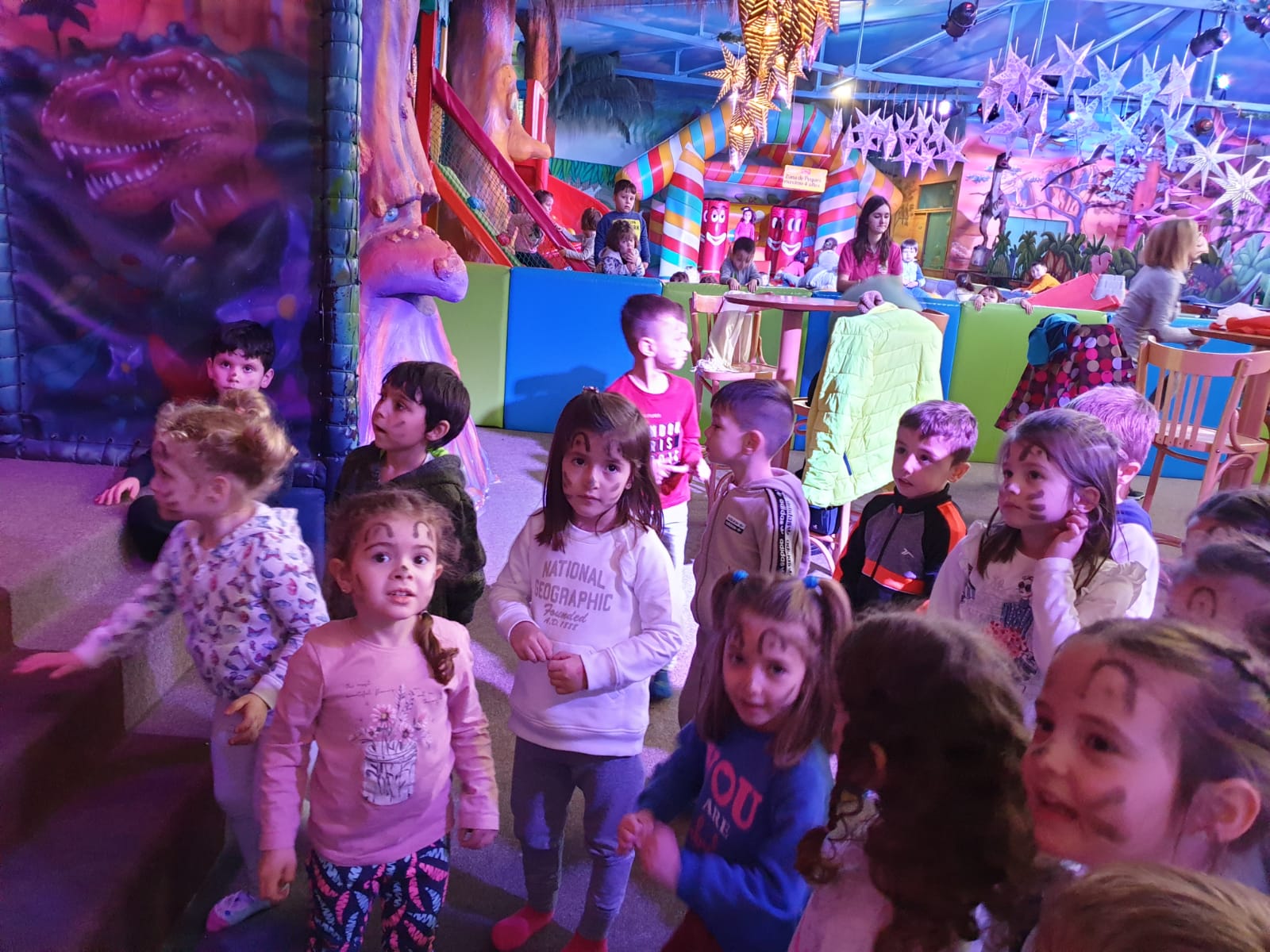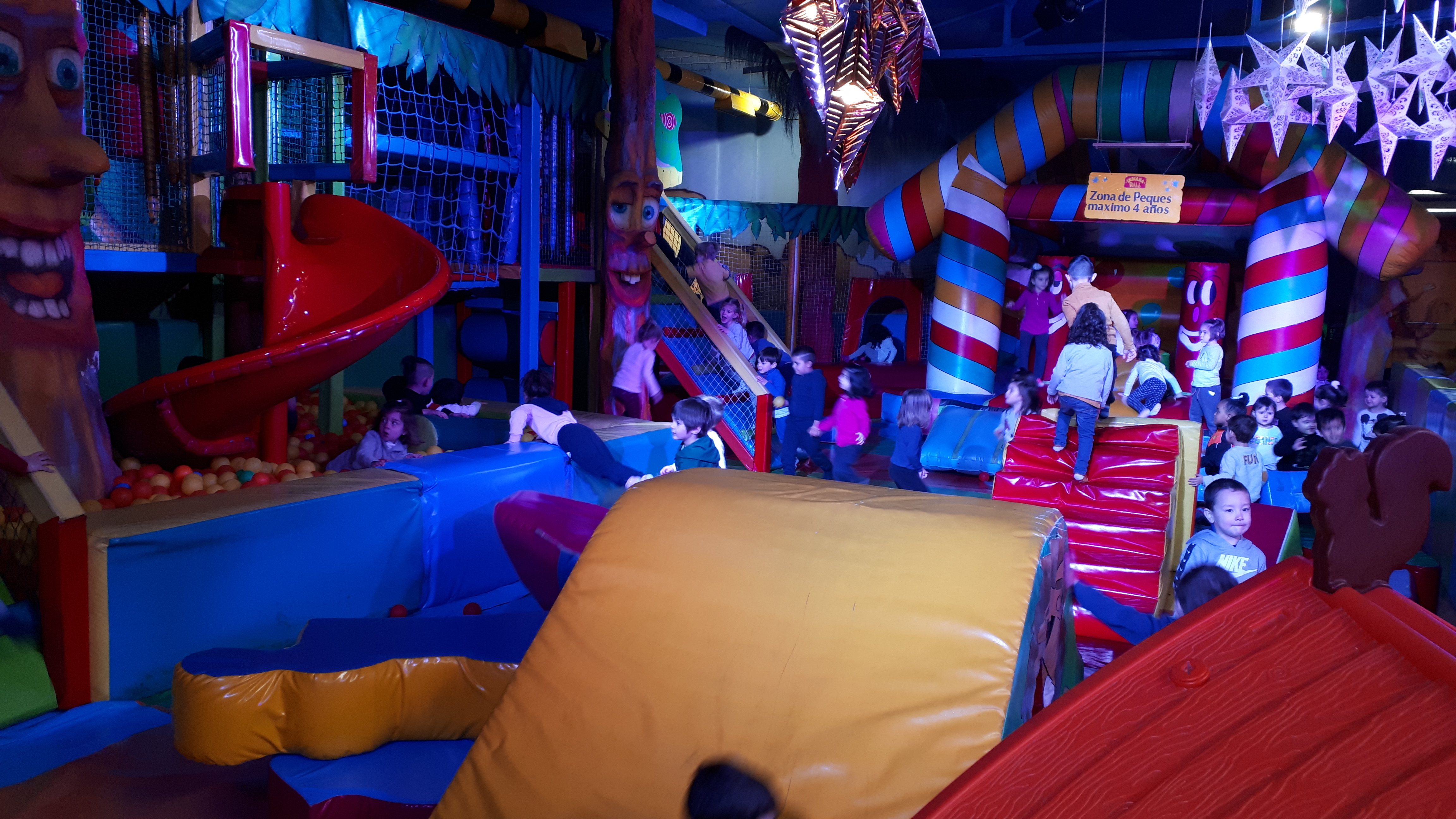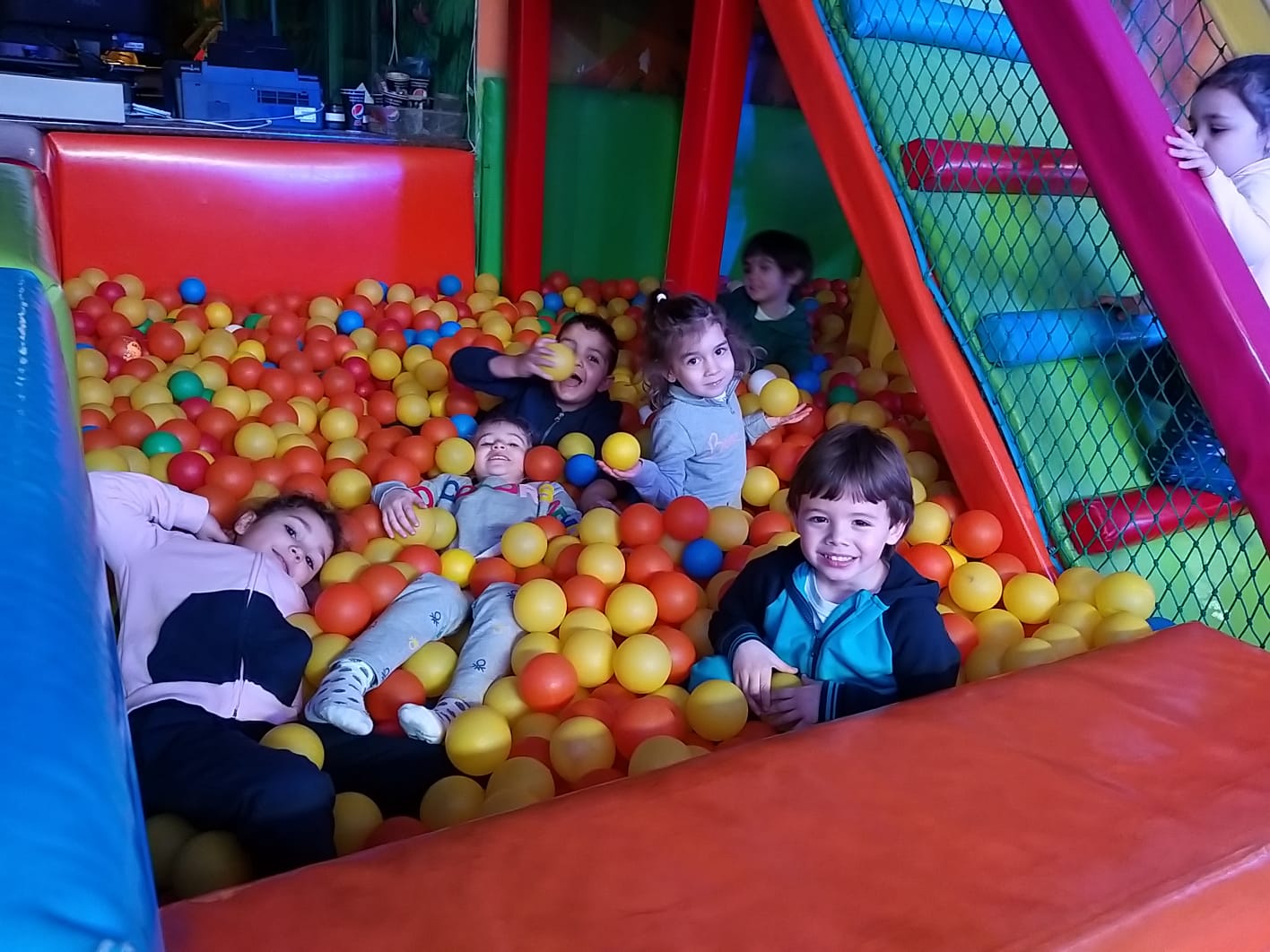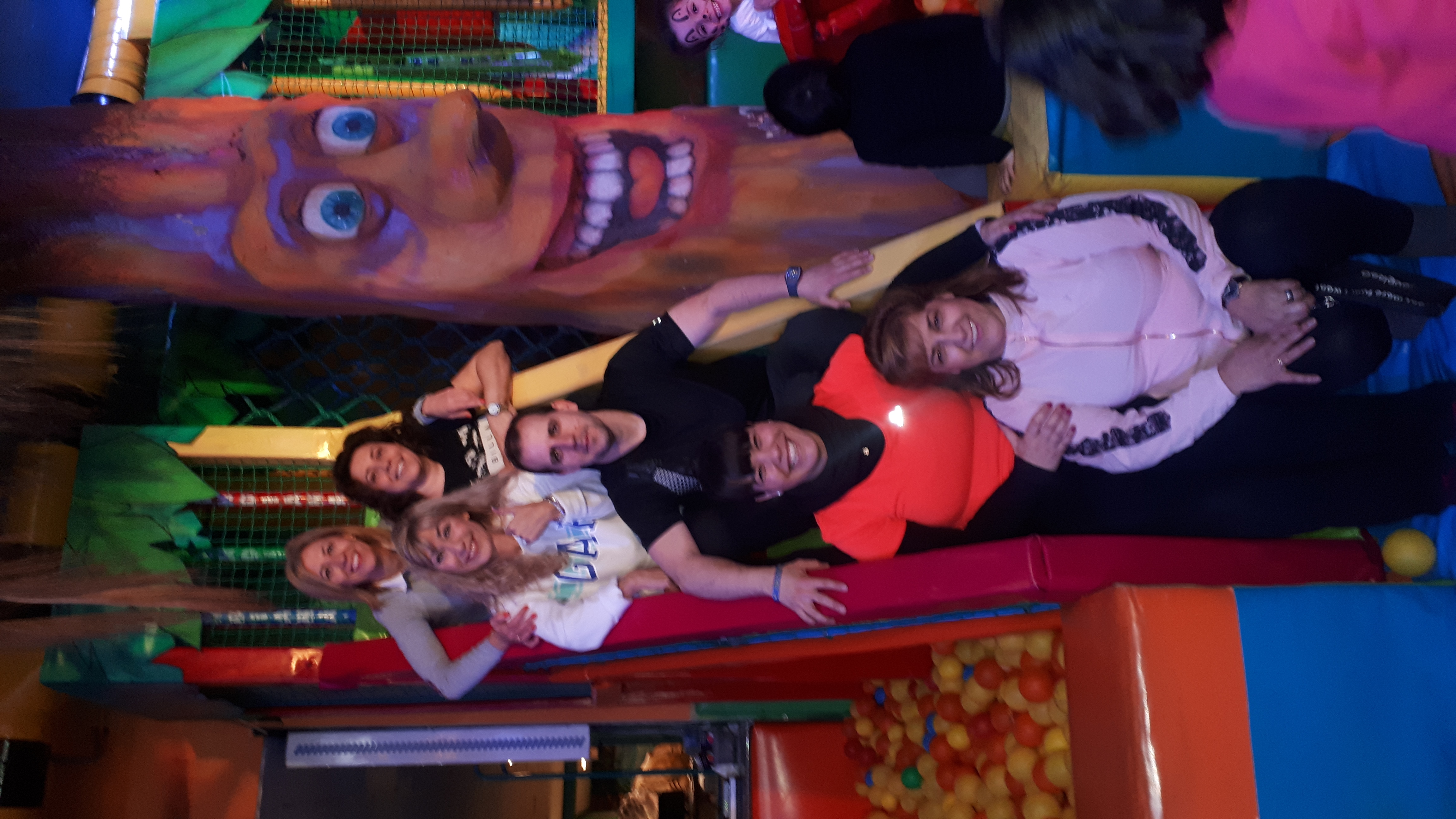 Lo pasaron muy bien compartiendo juegos con nuestros compañeros y profesores en las colchonetas, la casa del terror, la piscina de bolas, toboganes, jugando al fútbol.. Cantamos y bailamos en el escenario.