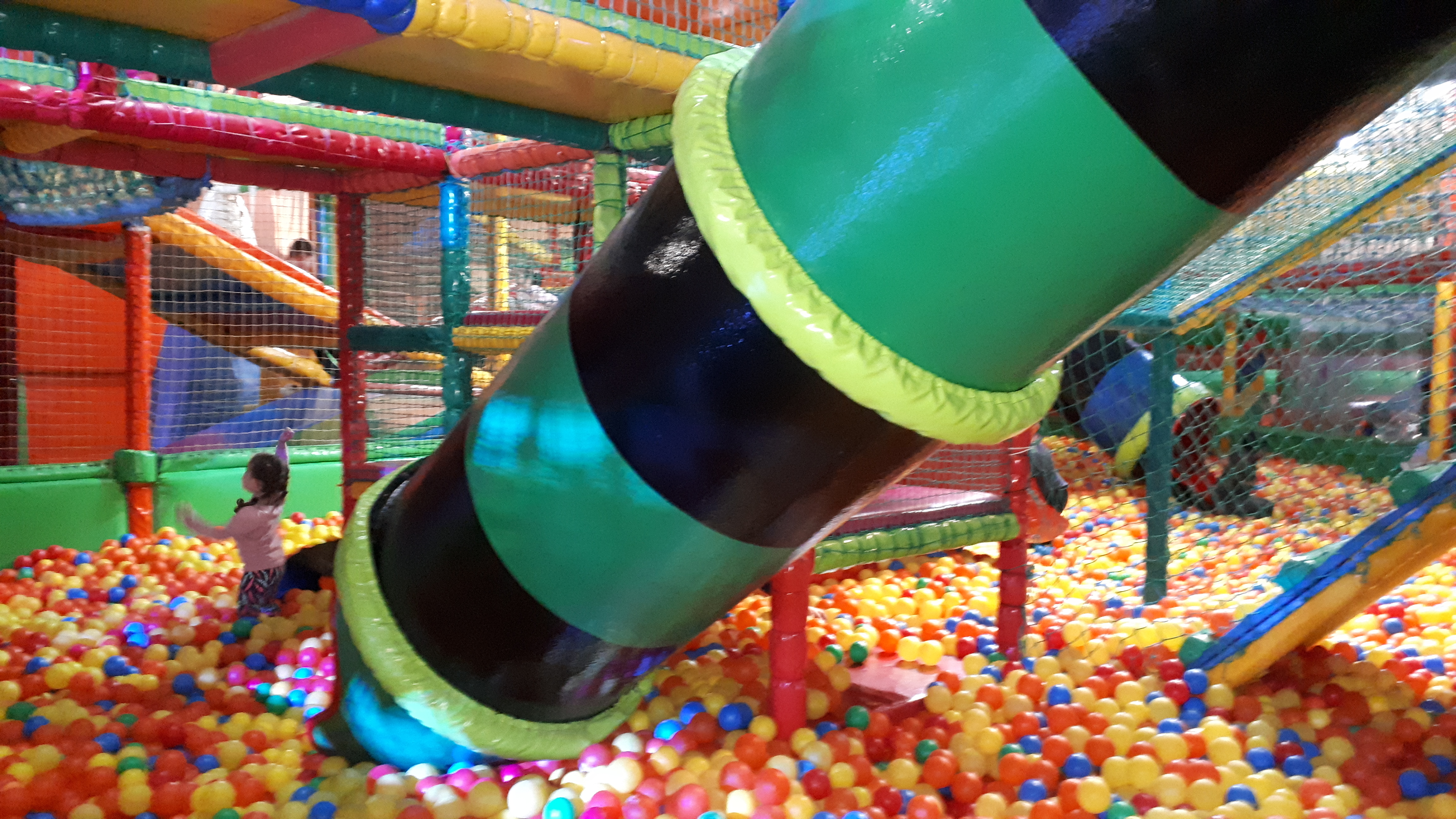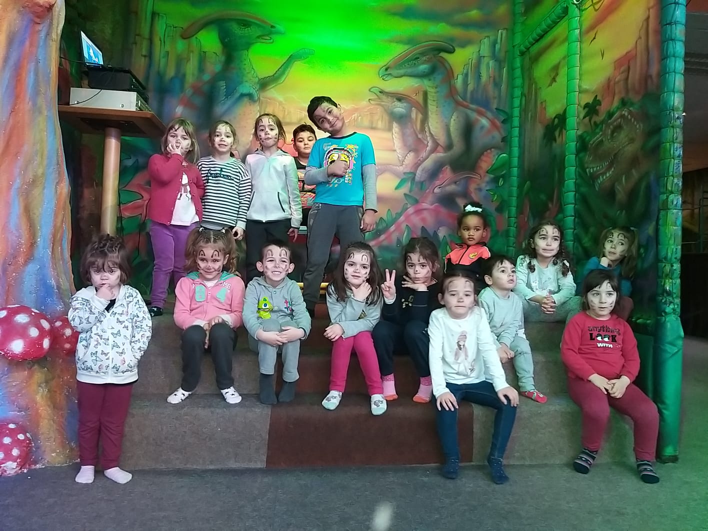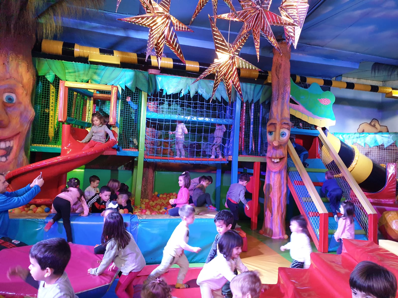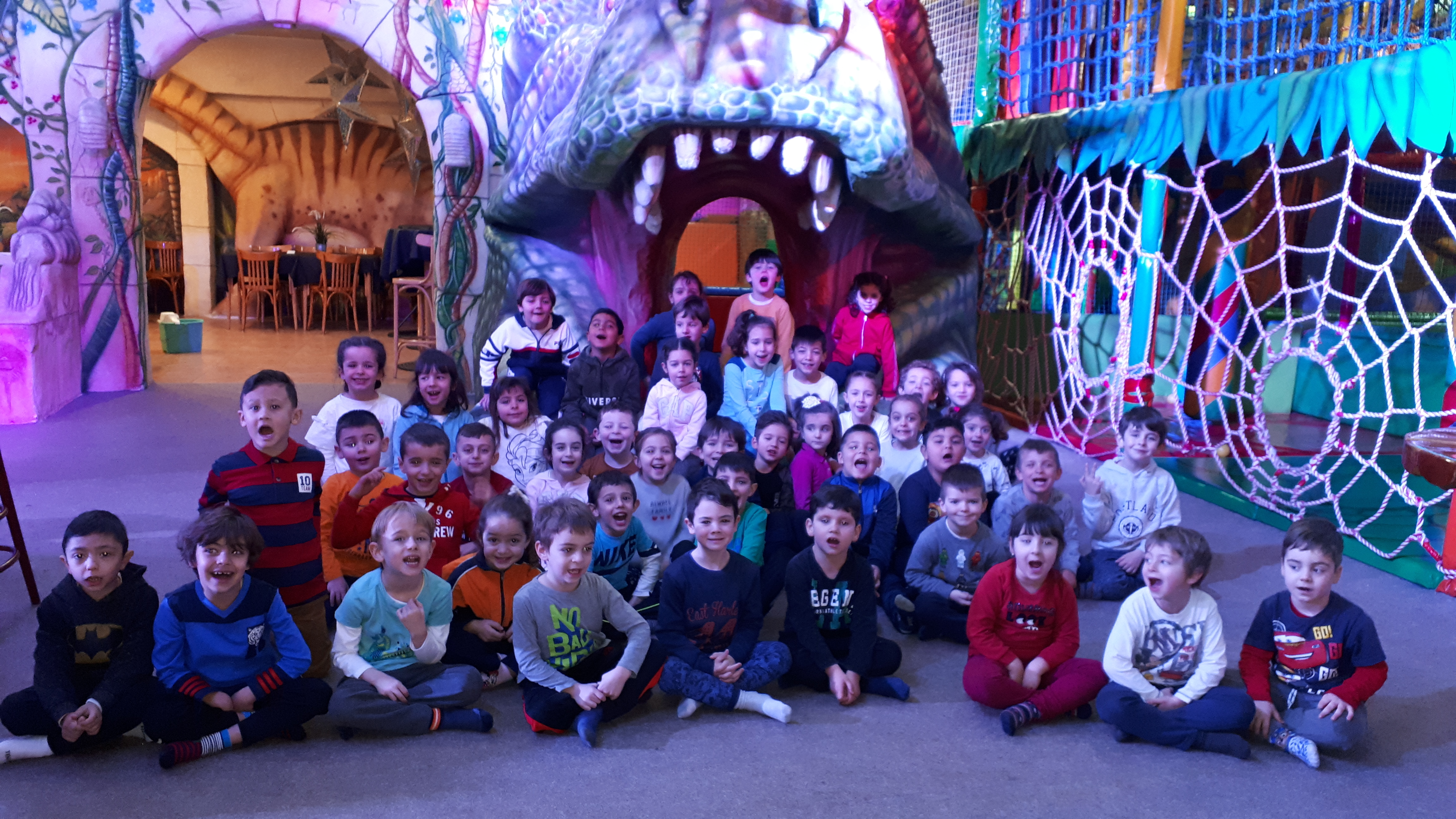 Lo pasaron muy bien compartiendo juegos con nuestros compañeros y profesores en las colchonetas, la casa del terror, la piscina de bolas, toboganes, jugando al fútbol.. Cantamos y bailamos en el escenario.