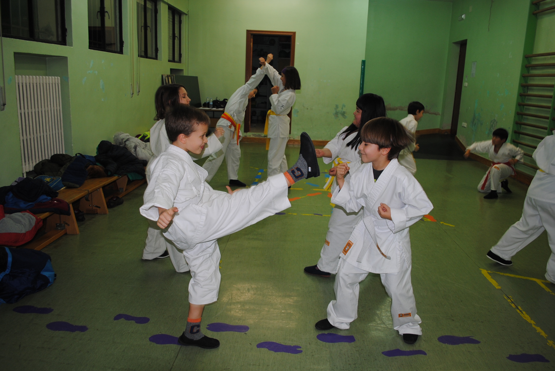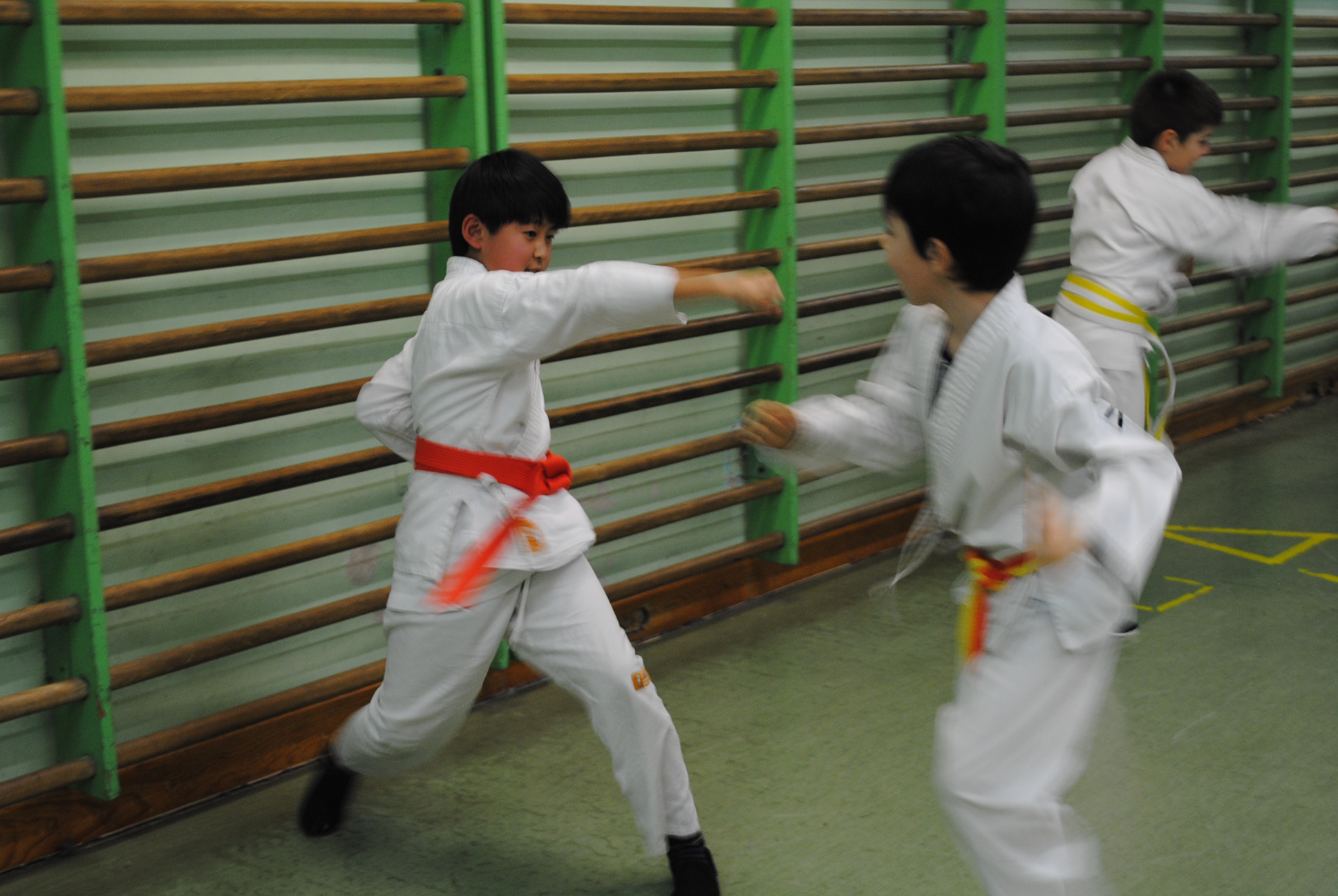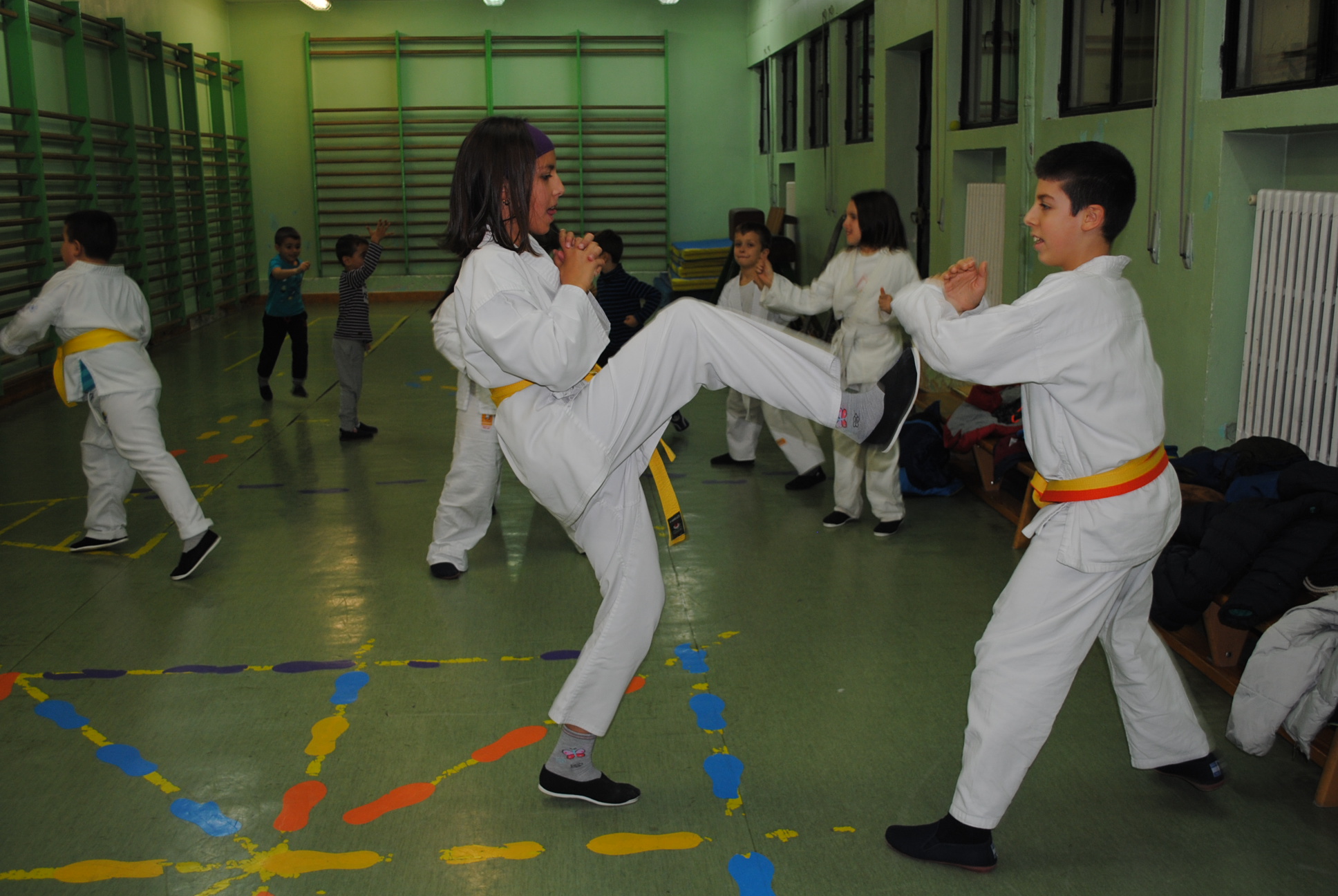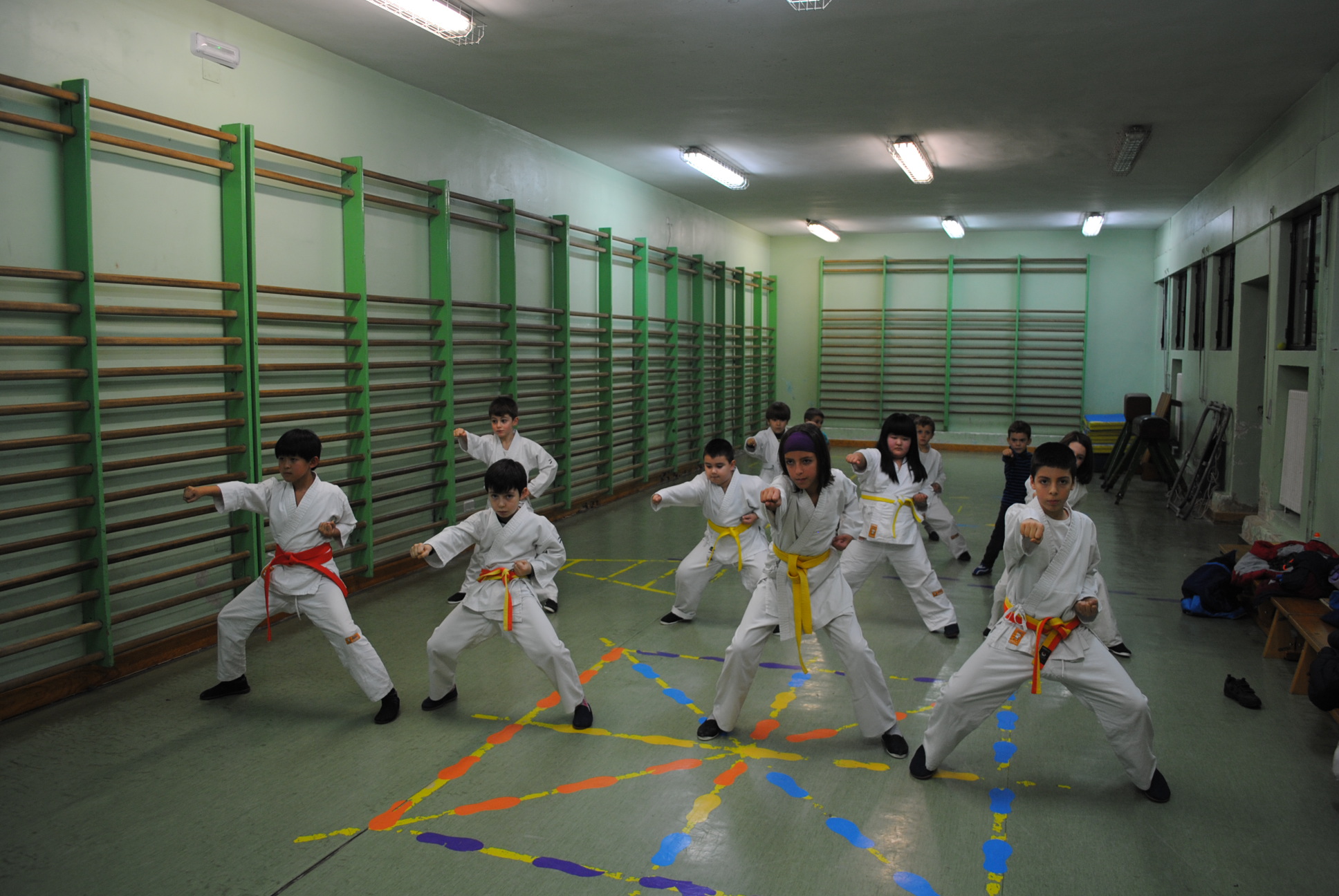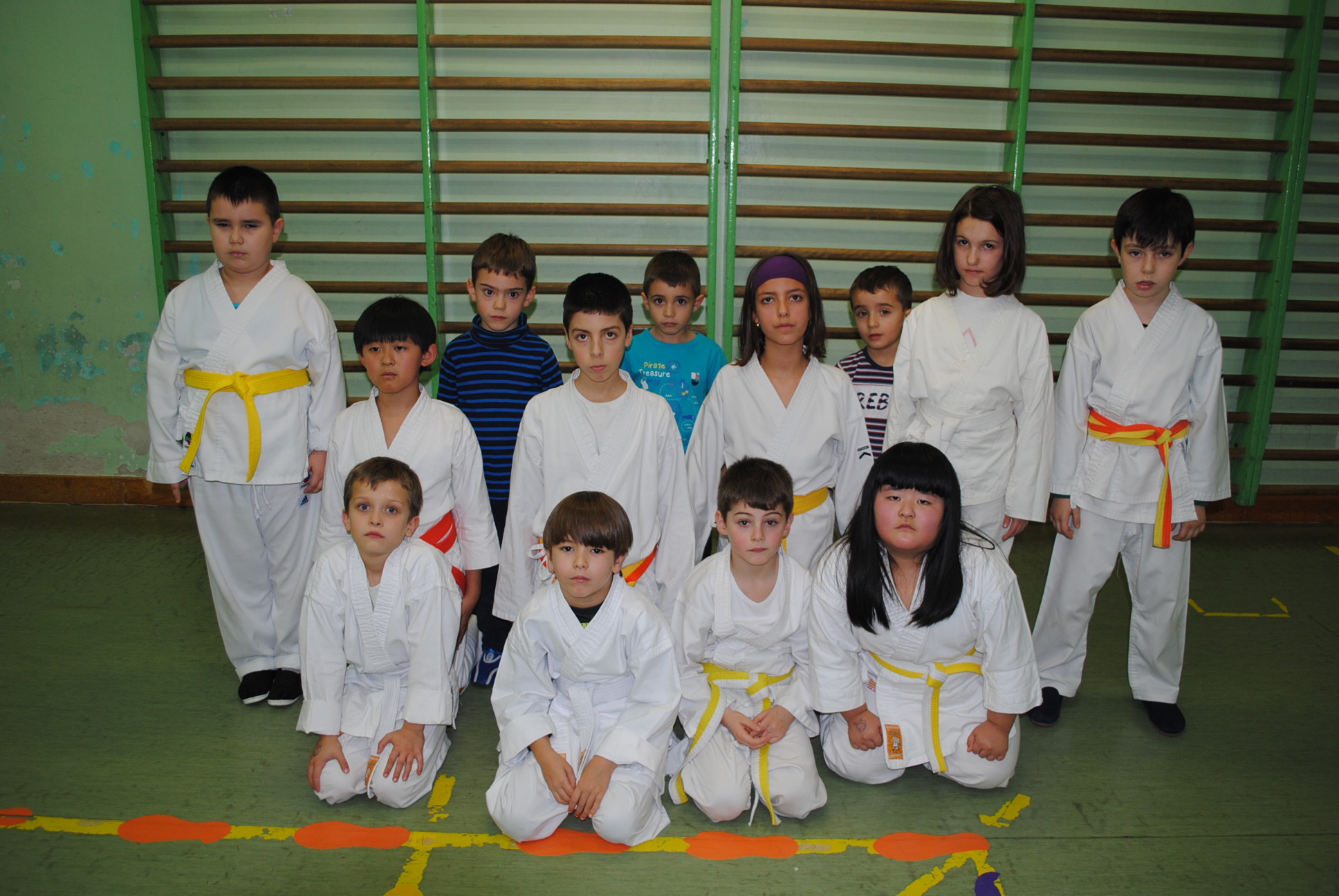 Este curso el grupo de karate consta de 18 niños de entre 4 y 10 años de cinturón blanco a amarillo naranja. En estas edades tan jóvenes lo que se pretende es que los niños aprendan con ejercicios a modo de juegos técnicos que desarrollan habilidades: psicomotricidad, equilibrio, lateralidad, coordinación etc. Desde el principio se les trasmiten los valores del arte marcial en cuanto a respeto, rectitud, esfuerzo y constancia. Los ejercicios básicos de karate se enseñan con precaución estando absolutamente exentos de peligros, el objetivo es que los niños adquieran habilidades técnicas divirtiéndose, así como a desarrollar una actitud positiva y de autocontrol, muy importante para afrontar con éxito situaciones de la vida diaria.