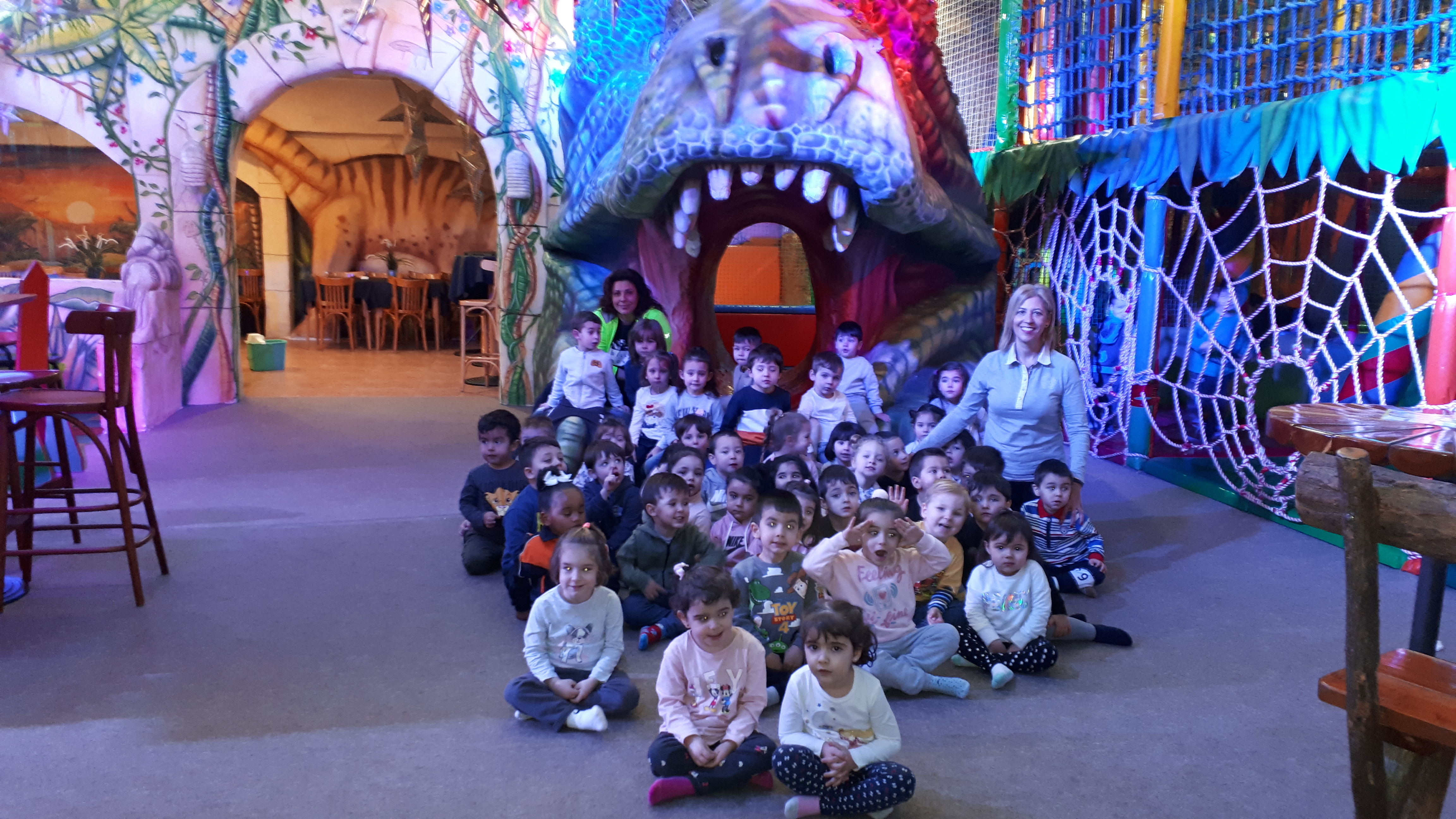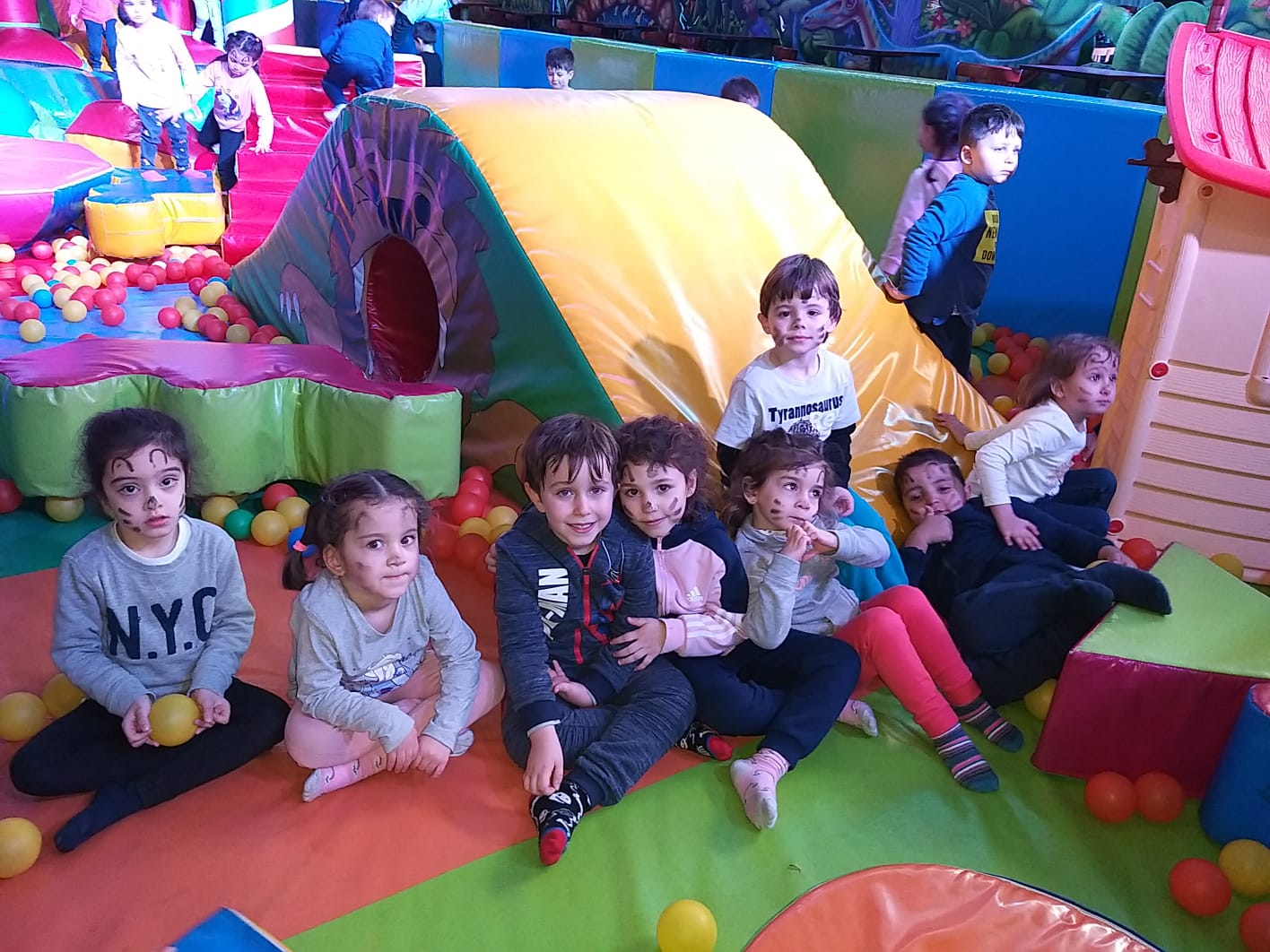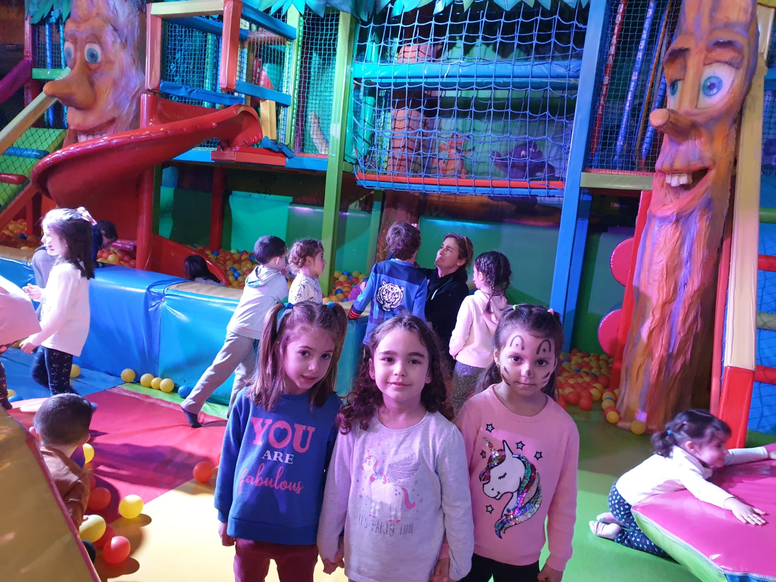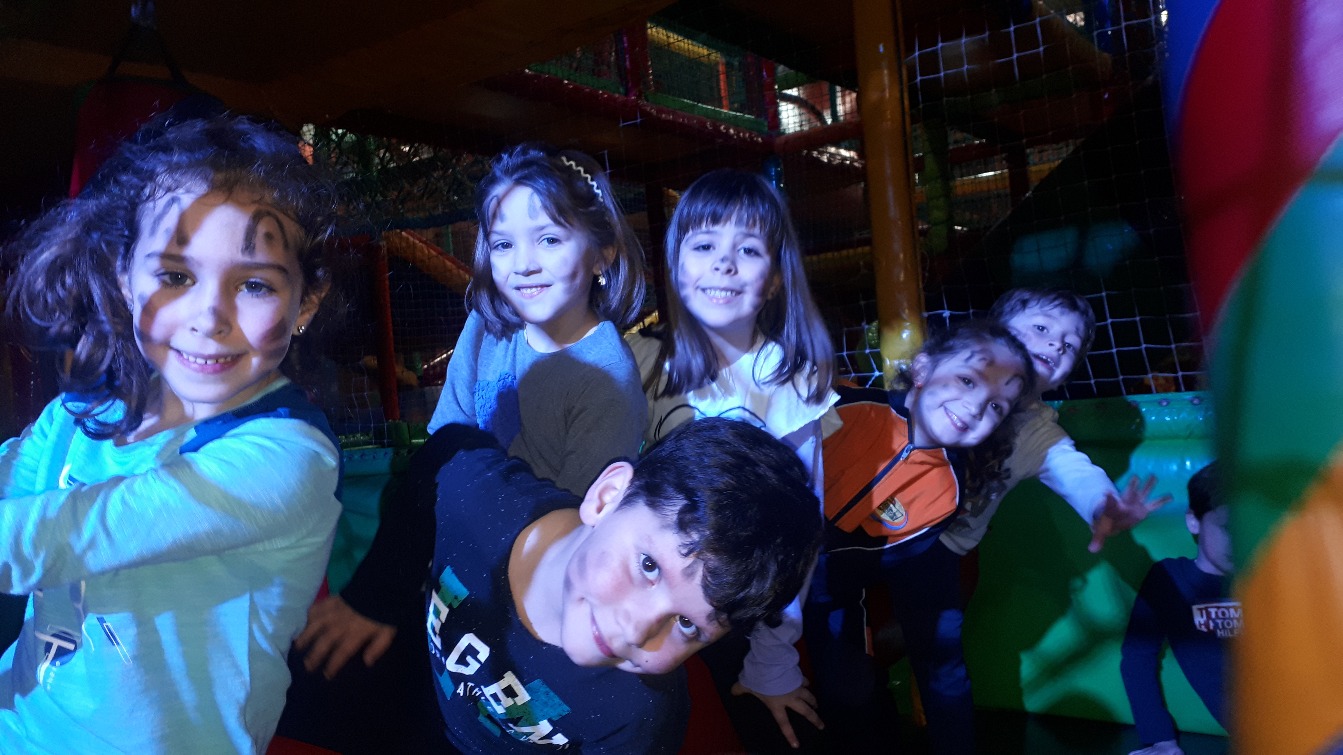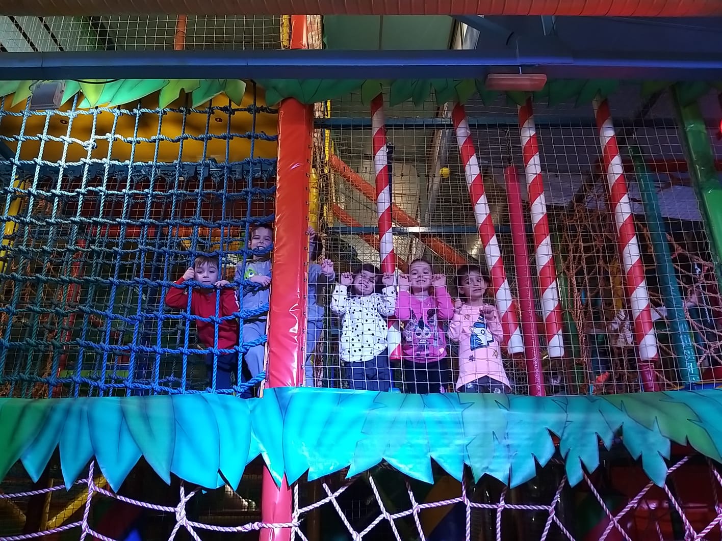 Lo pasaron muy bien compartiendo juegos con nuestros compañeros y profesores en las colchonetas, la casa del terror, la piscina de bolas, toboganes, jugando al fútbol.. Cantamos y bailamos en el escenario.