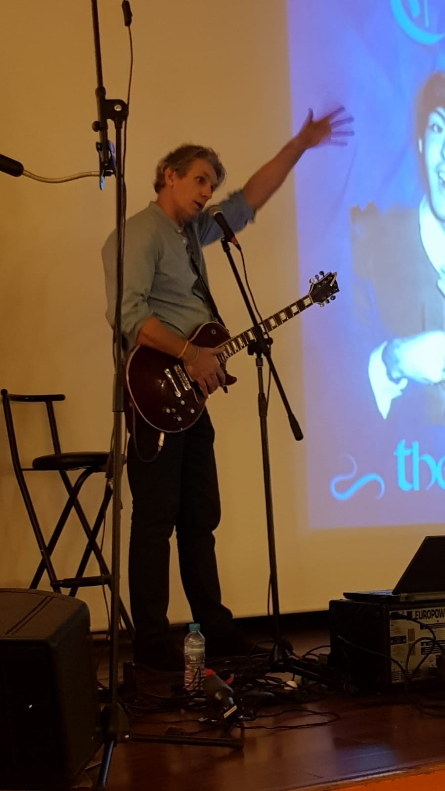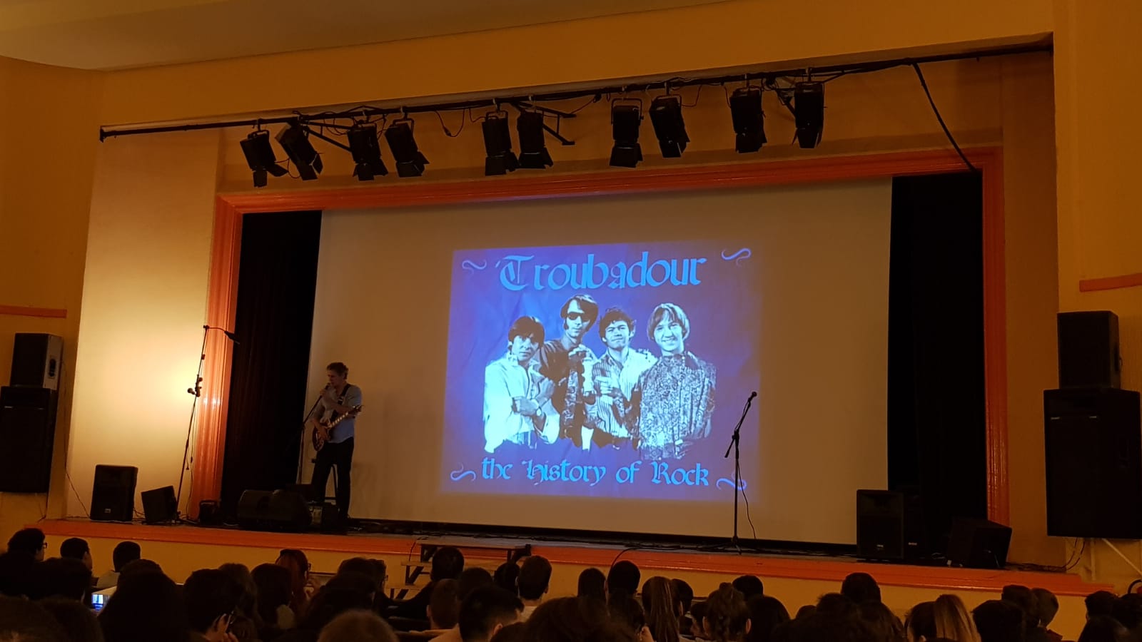 El “Trovador”, es profesor de la Escuela Oficial de Idiomas de Ávila, y tiene amplia experiencia realizando este tipo de conciertos. Acompañado de una base musical y de su guitarra eléctrica, canta canciones de importantes figuras de la historia de la música, como Elvis Presley, The Beatles, The Rolling Stones, Bob Marley, Robbie Williams, Green Day…Y todo ello acompañado de buen humor e imágenes y vídeos de elaboración propia. Asimismo, toca temas como la guerra, el amor, o la violación de los derechos humanos (tema propio, Iron Age).