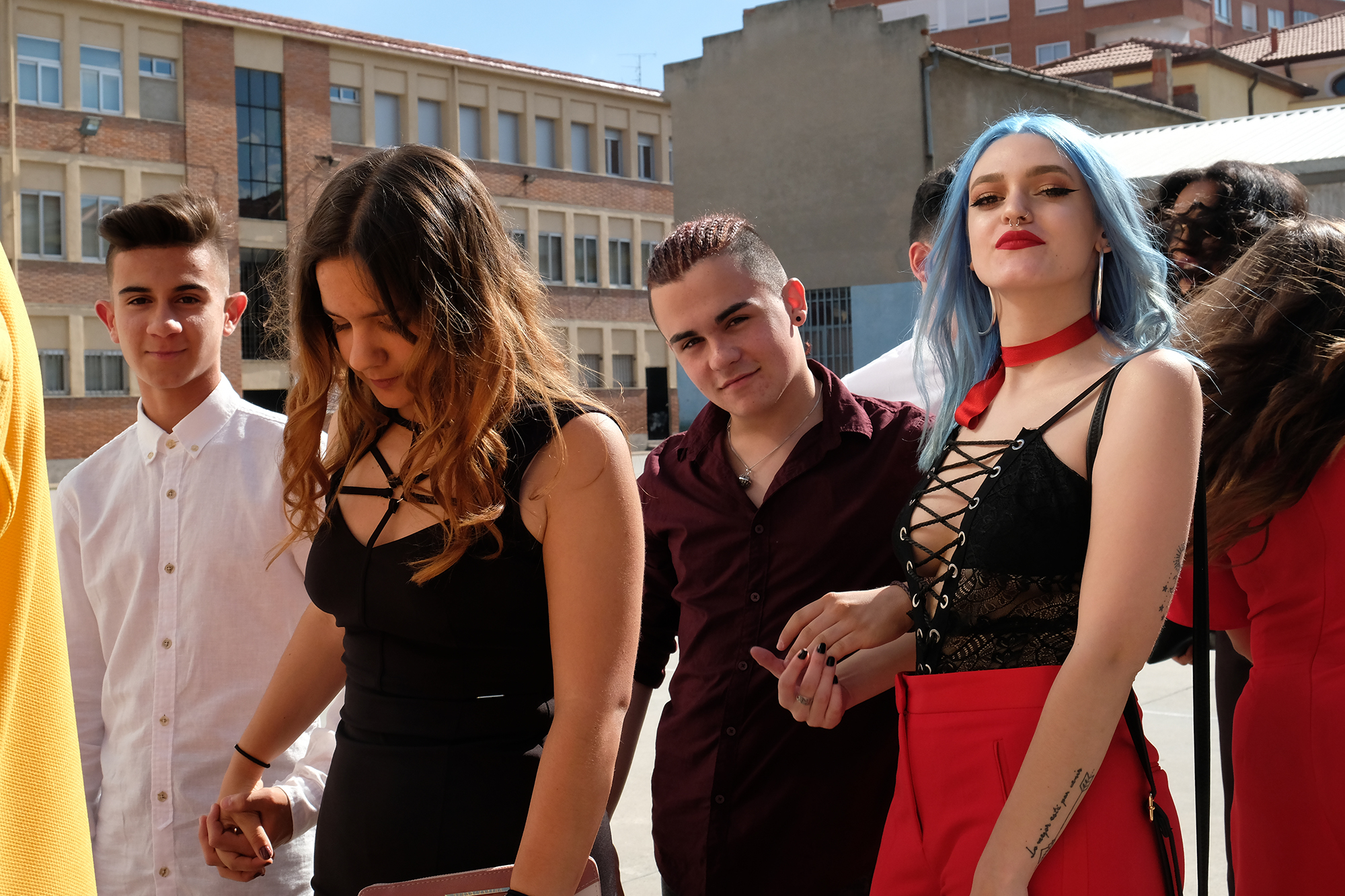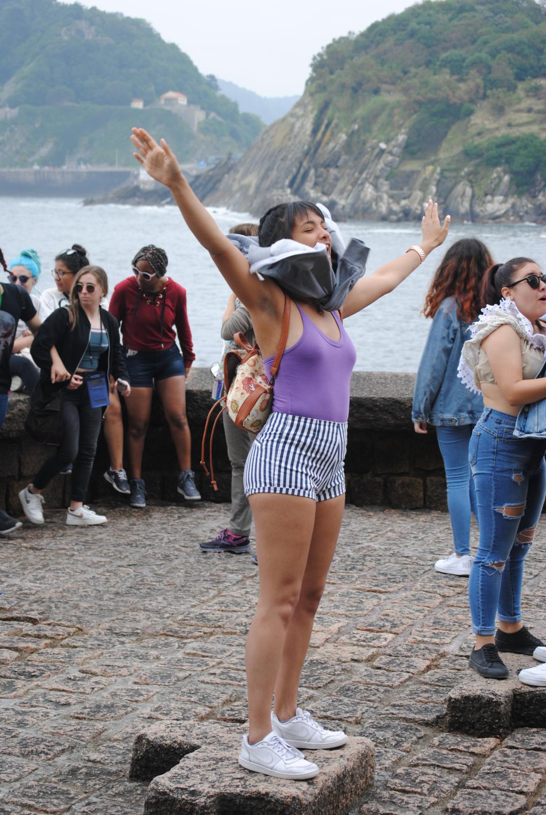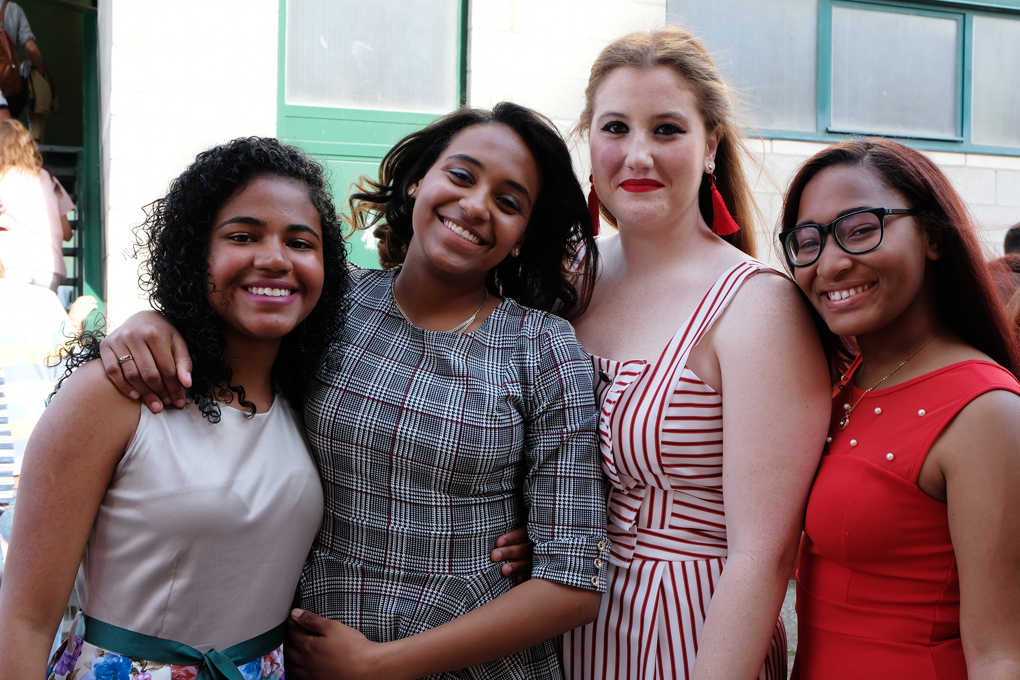 Los estudiantes disfrutaron mucho transformando el espacio de la recepción con un potente mural de cinta.