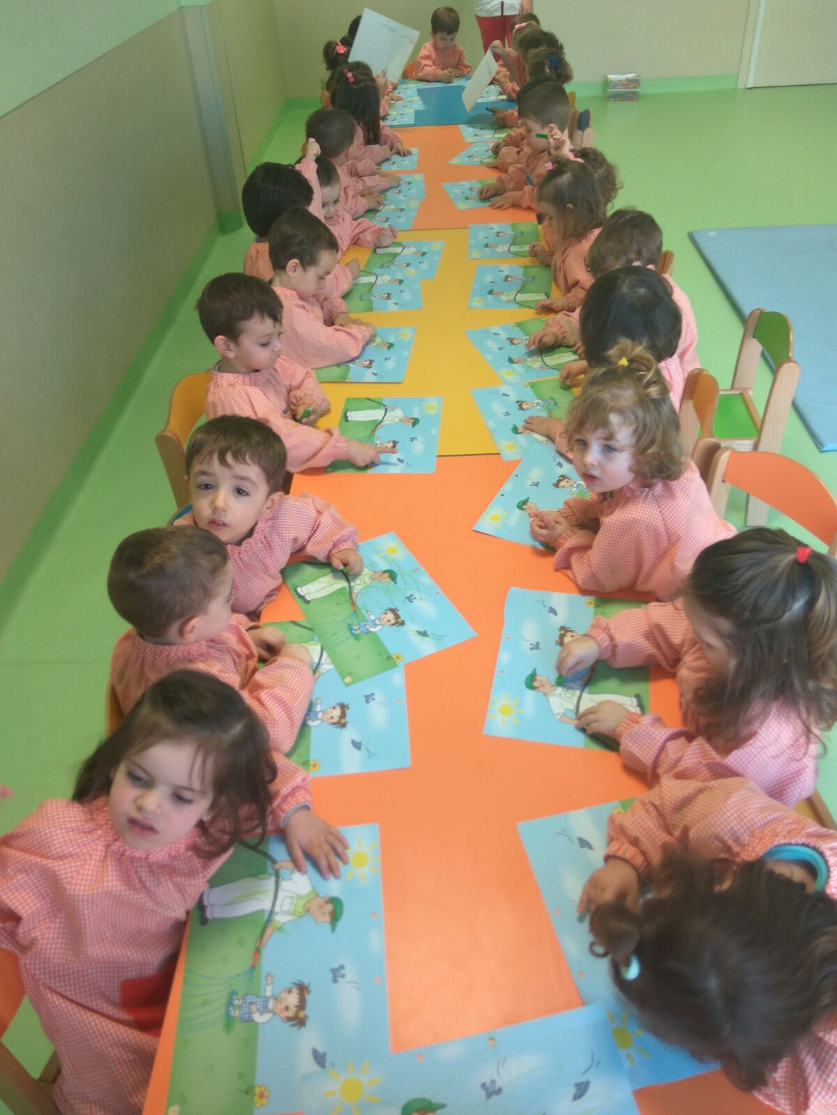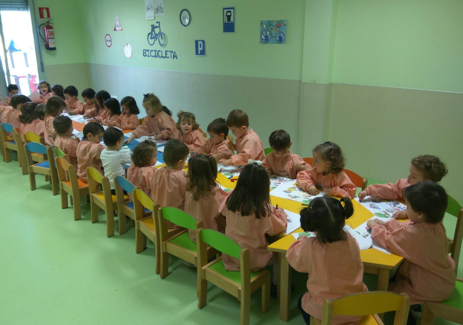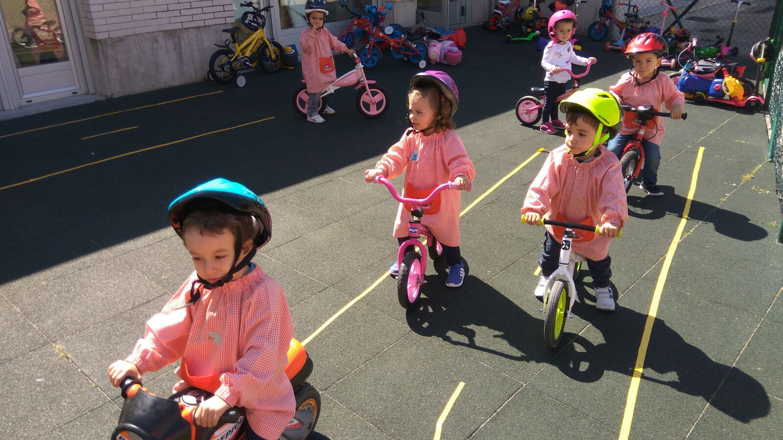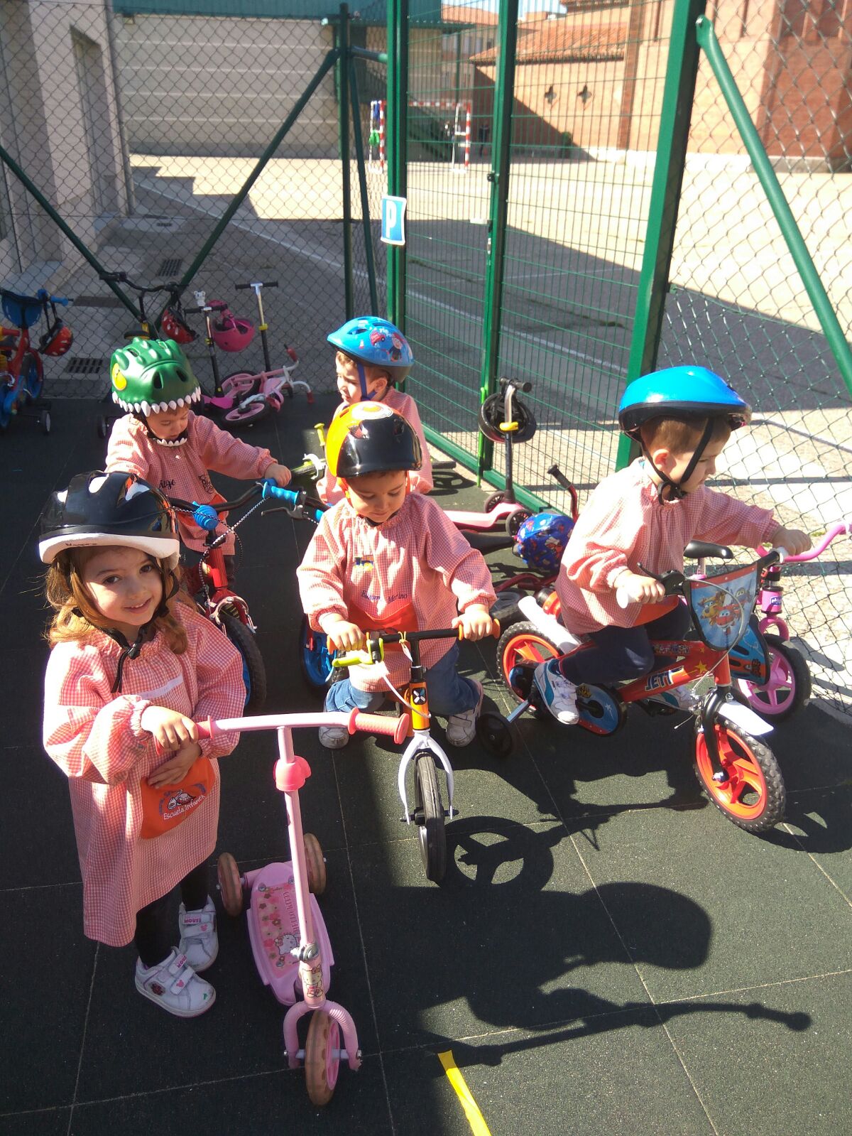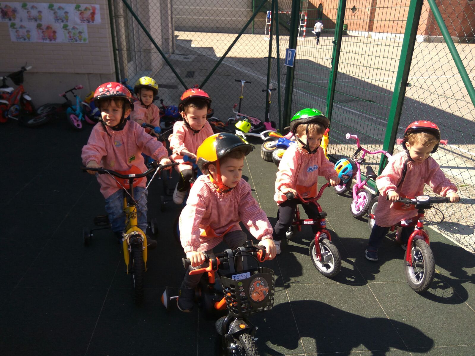 A primera hora de la mañana hemos leído el cuento de la unidad que va sobre el desencuentro de dos amigos en el parque por un triciclo, por supuesto con final feliz ya que compartir es mejor para todos. Después hemos realizado la actividad correspondiente al cuento y finalmente hemos ido al patio donde había un circuito para practicar con nuestras bicis, hemos aprendido a respetar las señales y semáforos. Hemos aprobado el carnet de conducir después de realizar un circuito, respetando las normas de circulación.